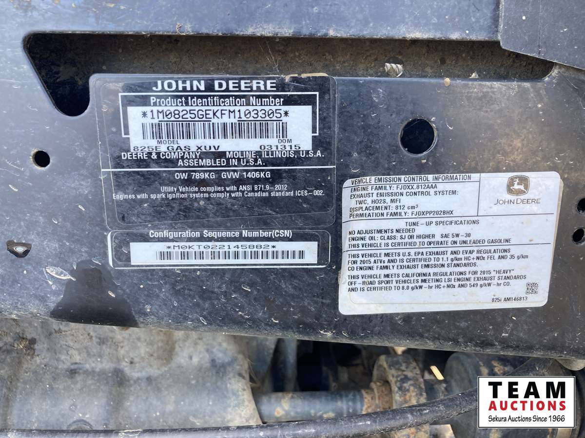 148 2015 John Deere 825E XUV 4X4 Gator Side by Side