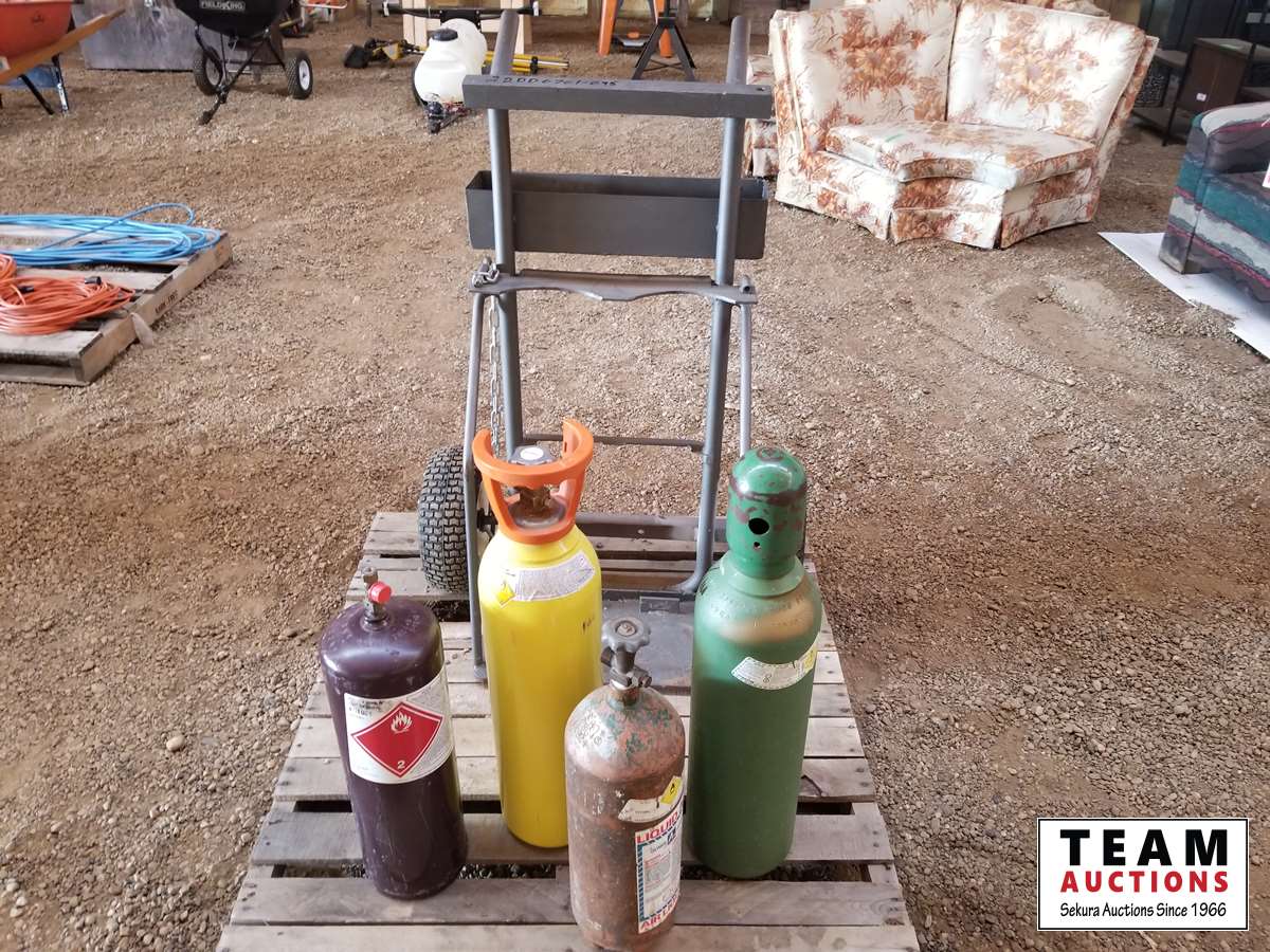 63 Acetylene Tank Cart with (4) Small Bottles