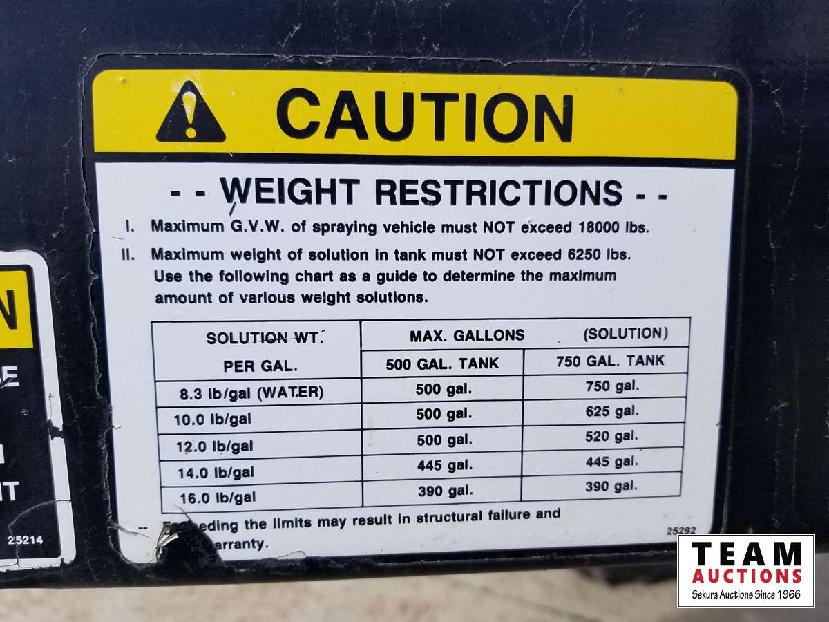 750 gallon tank, 75 ft booms, 20 inch (3) way nozzle spacings (new), plumed for auto steer, new break controller