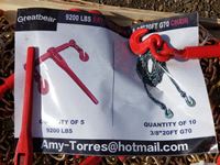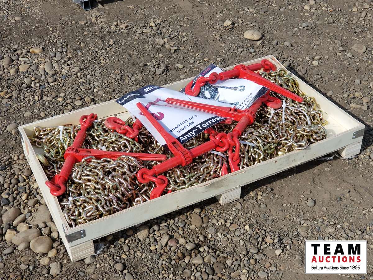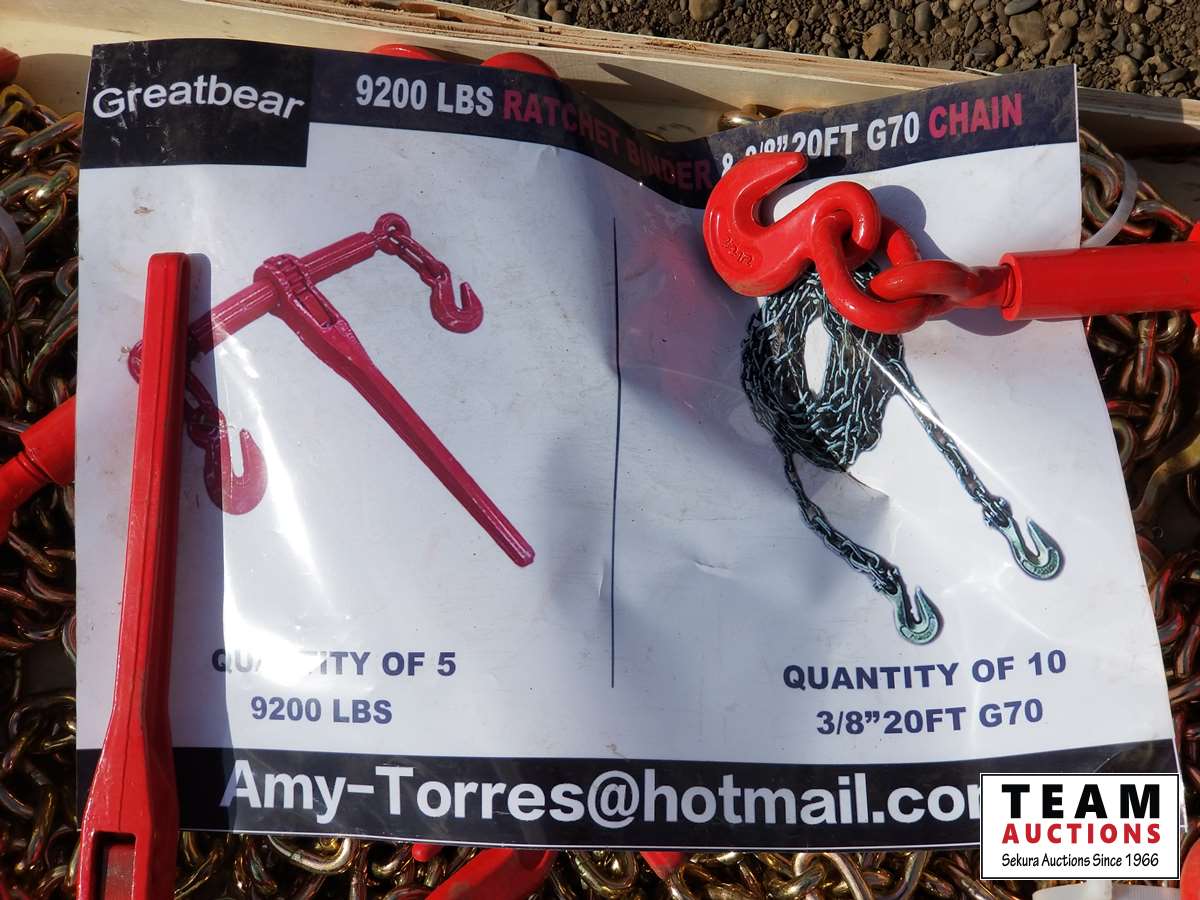 (5) 9200 lb ratchet binders, (10) 3/8 inch 20 ft G70 chains