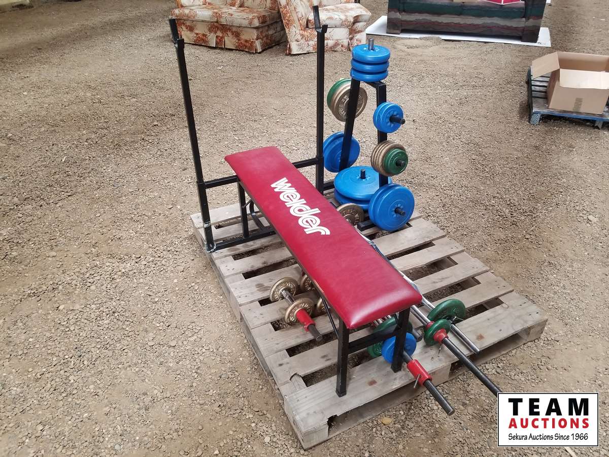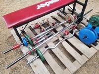 28 Weight Bench with Miscellaneous Bars & Weights