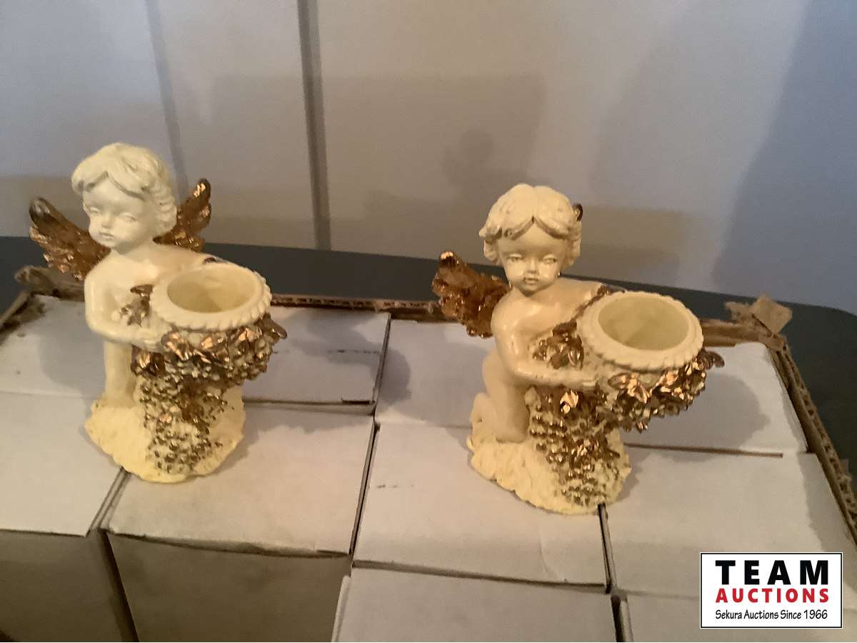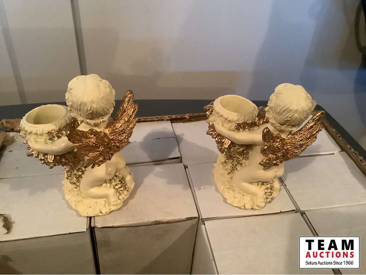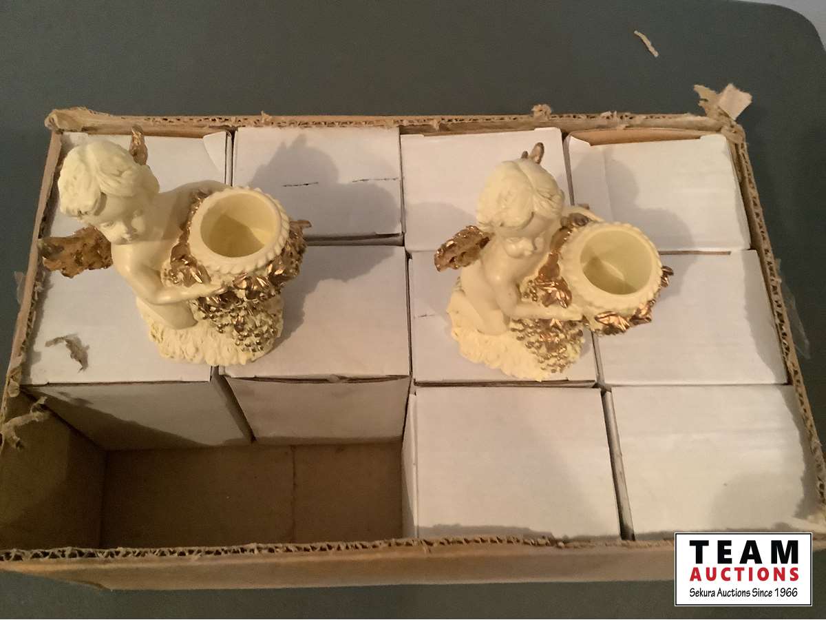 1252 Box of 12 Matching White Cherub Angle Candle Holders (Unused)