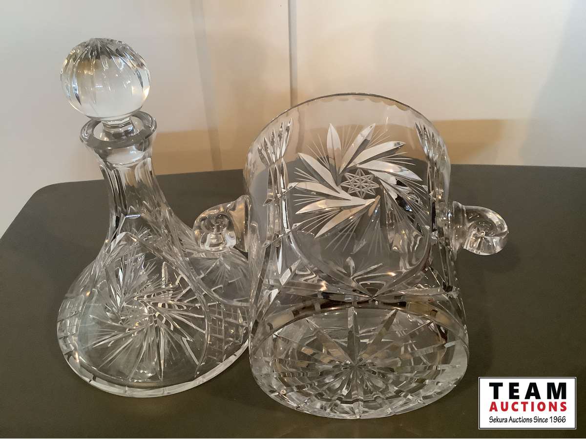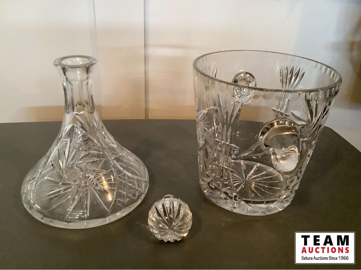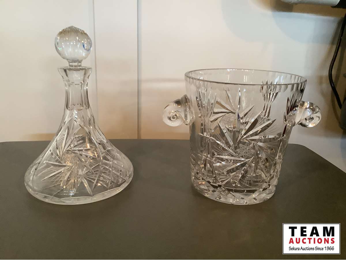 1259 Pin Wheel Crystal Decanter & Ice Bucket