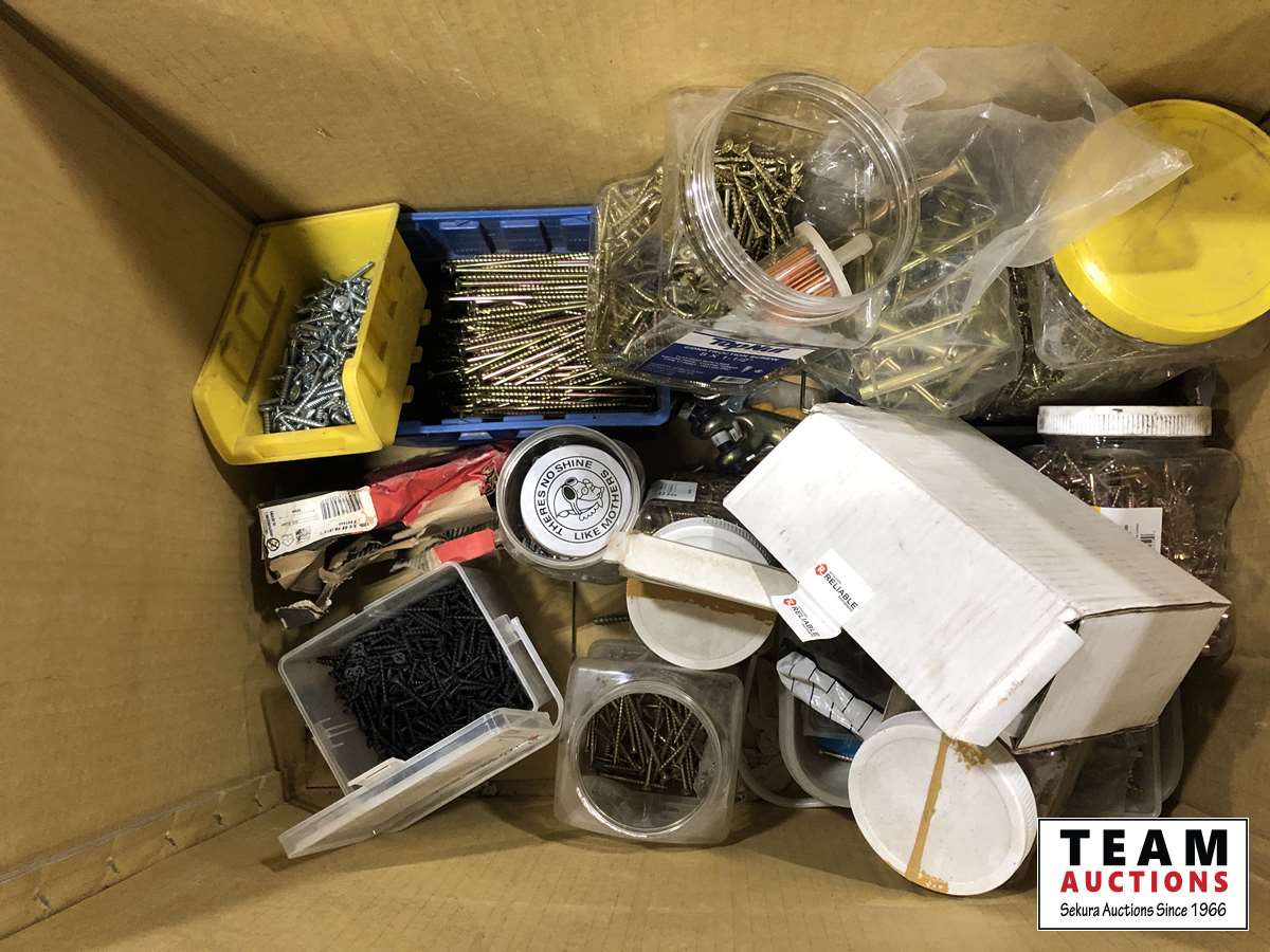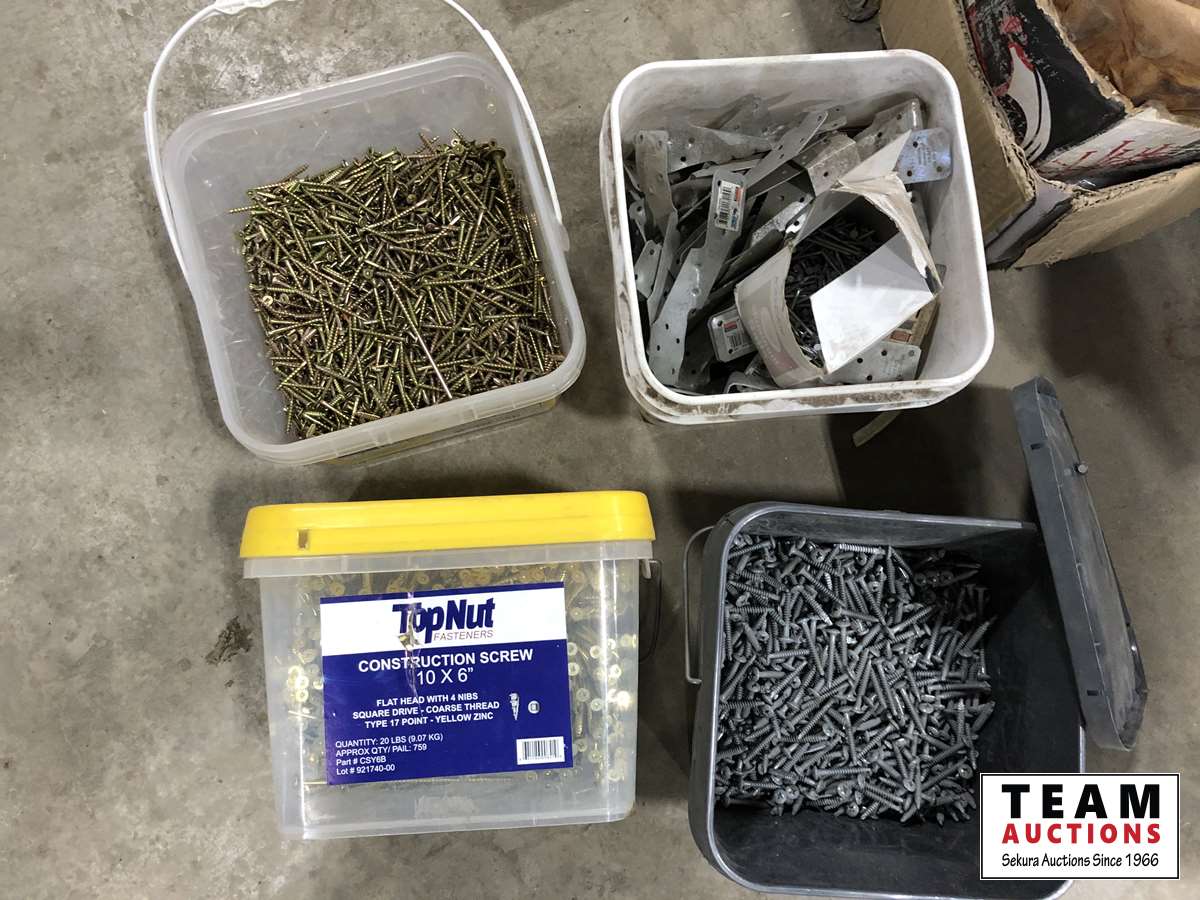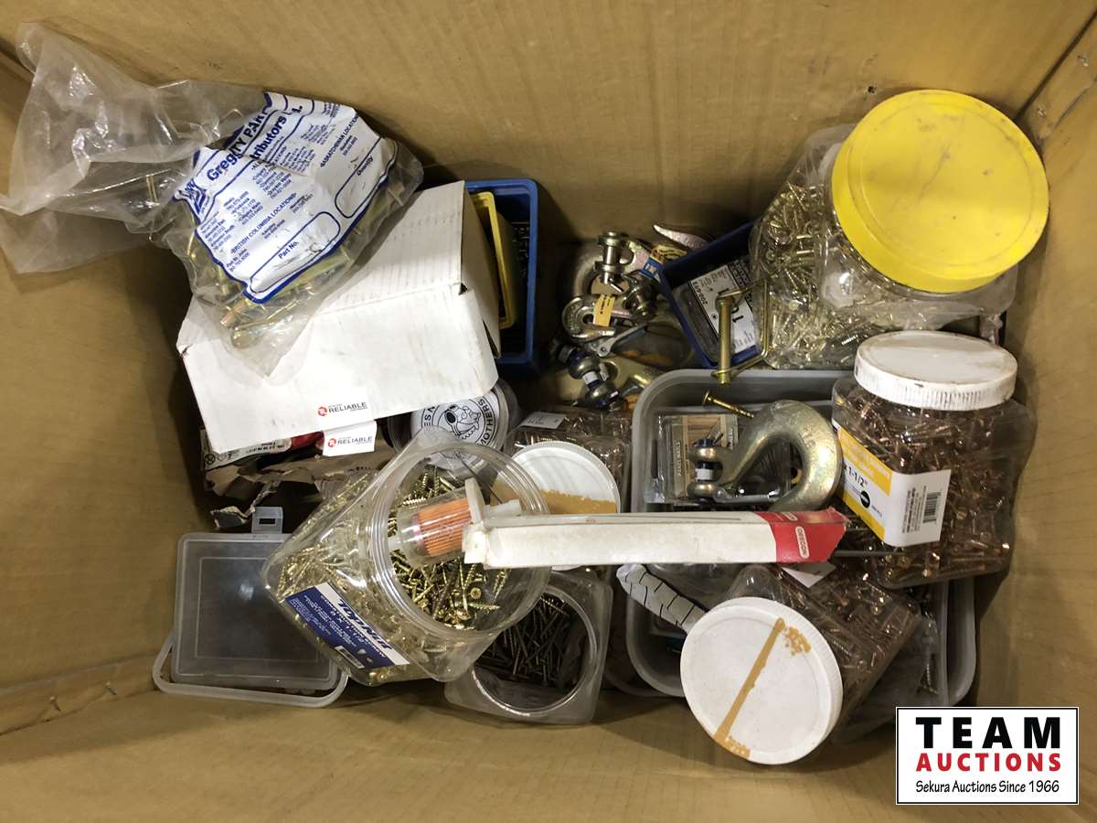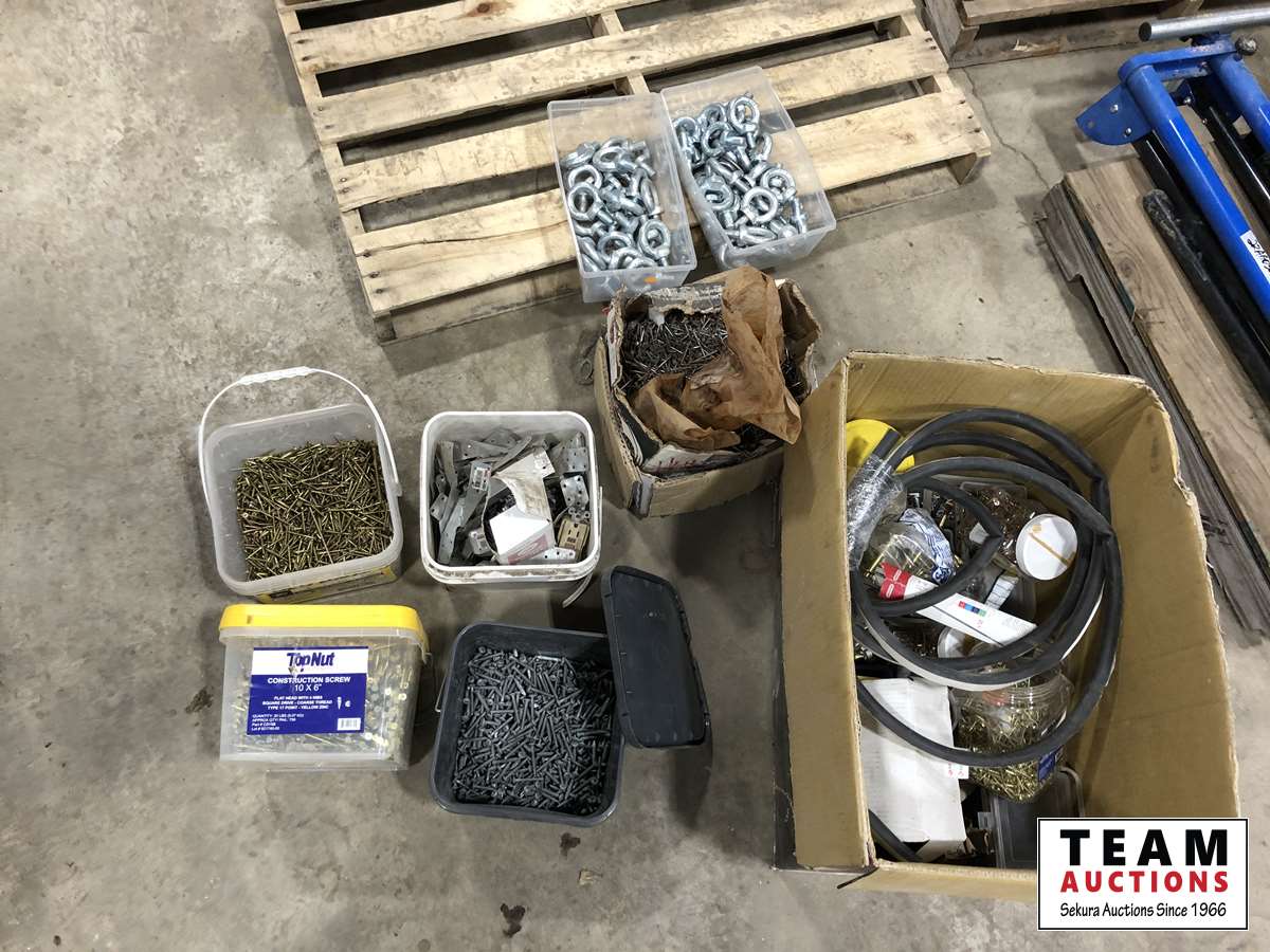 1063 Qty of Assorted Screws, Nails, Brackets, Chain Hooks & Eye Bolts