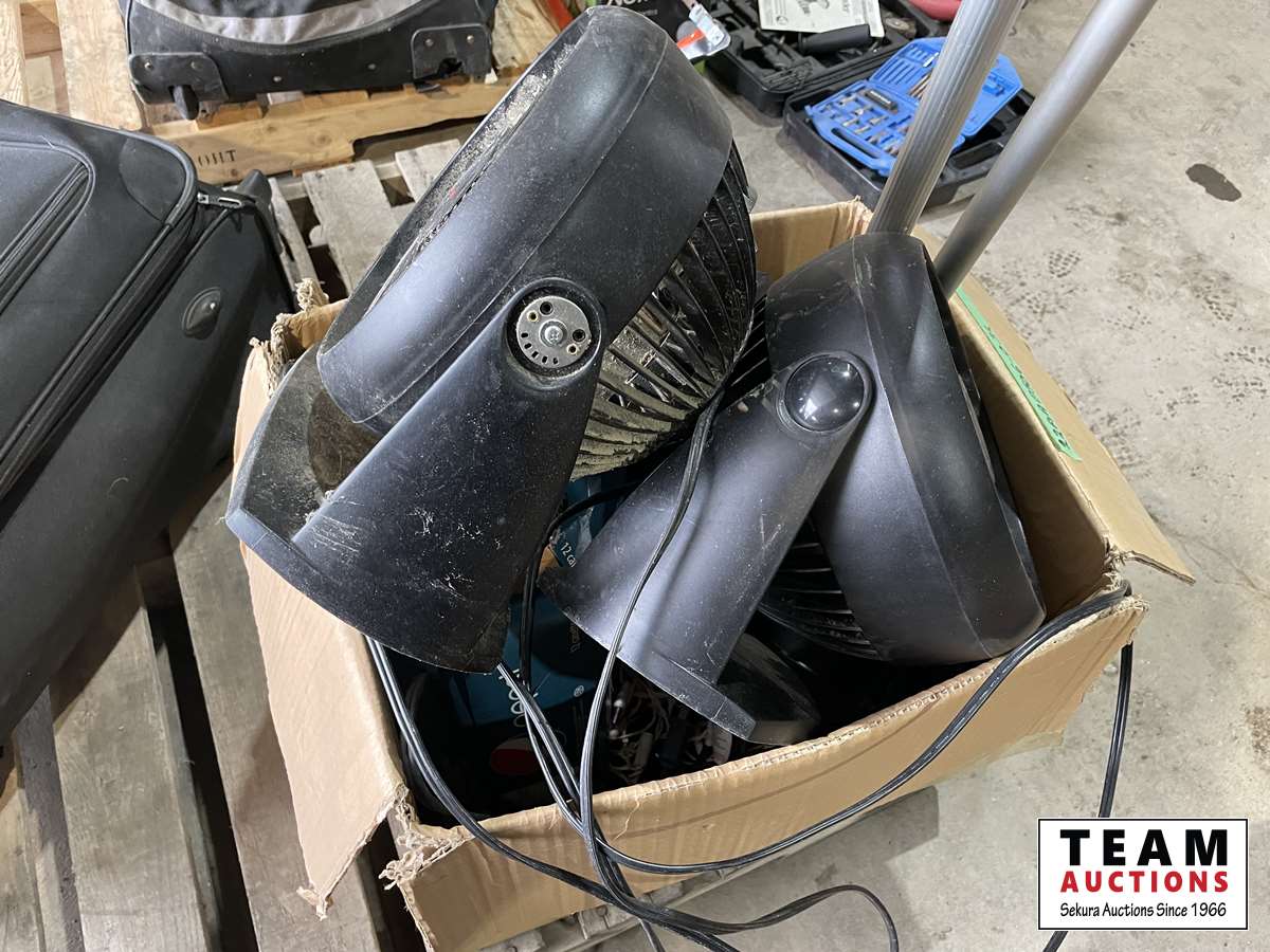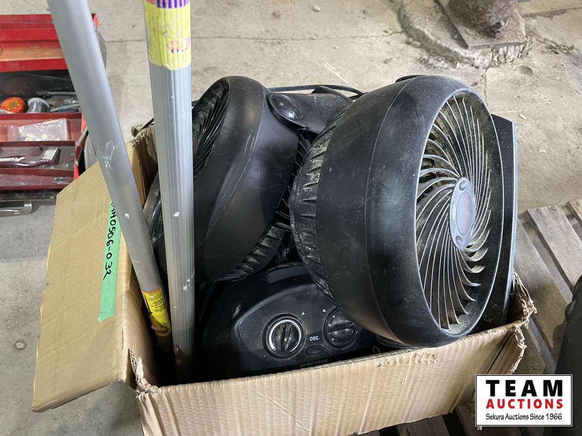 1395 Qty of Fans, Heater, Painters Poles