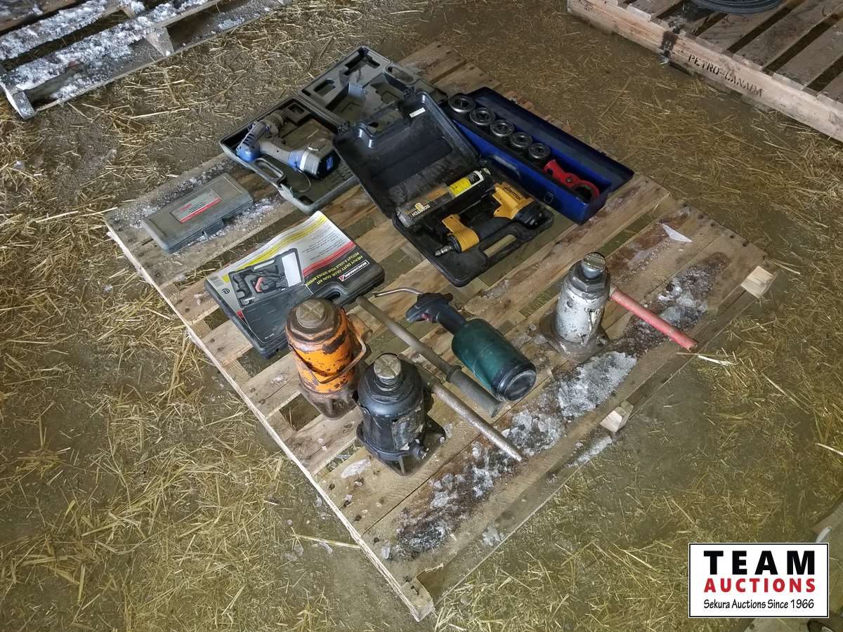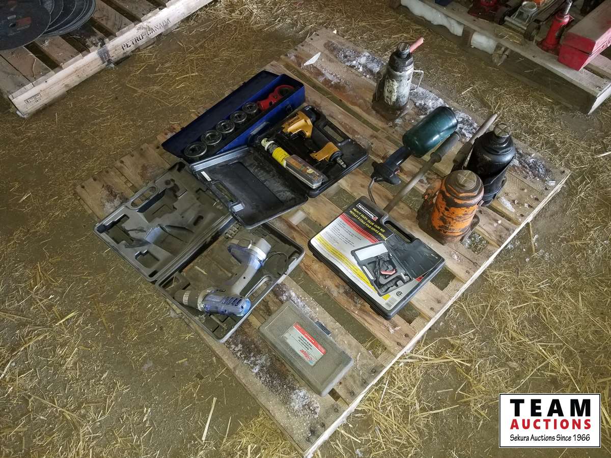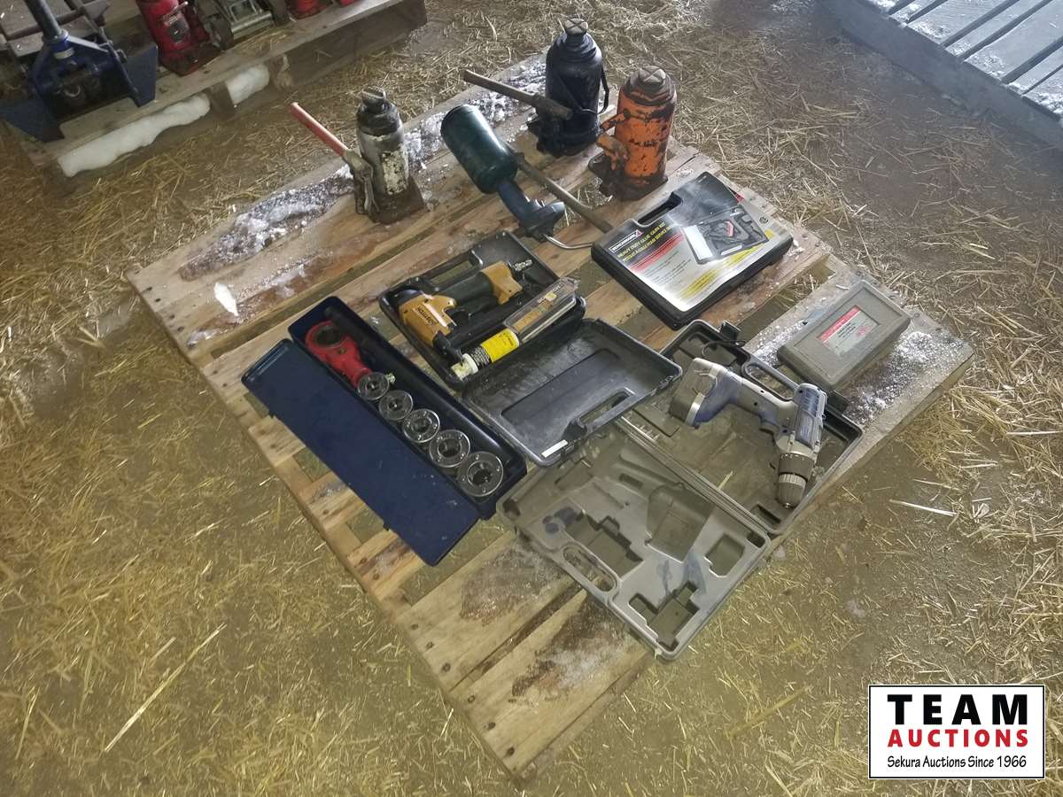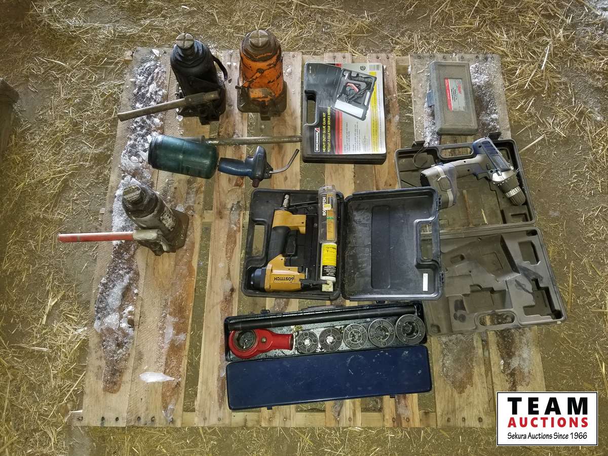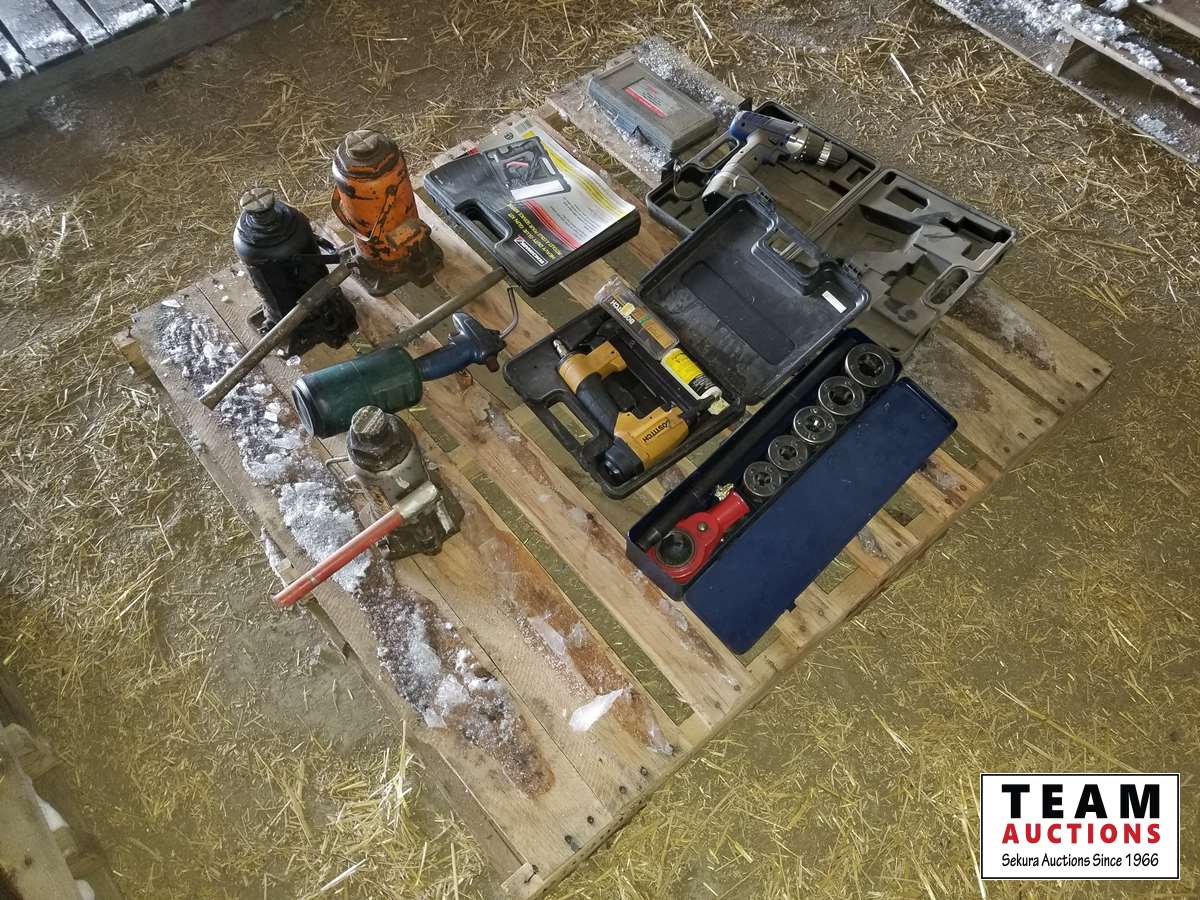 Hydraulic jacks, torch, drill, stapler, glue gun