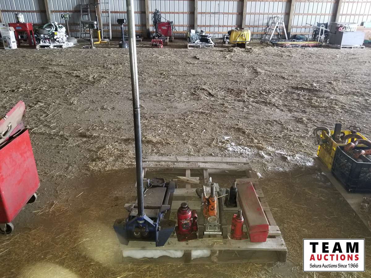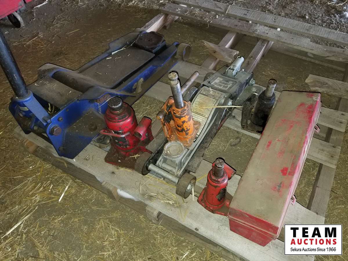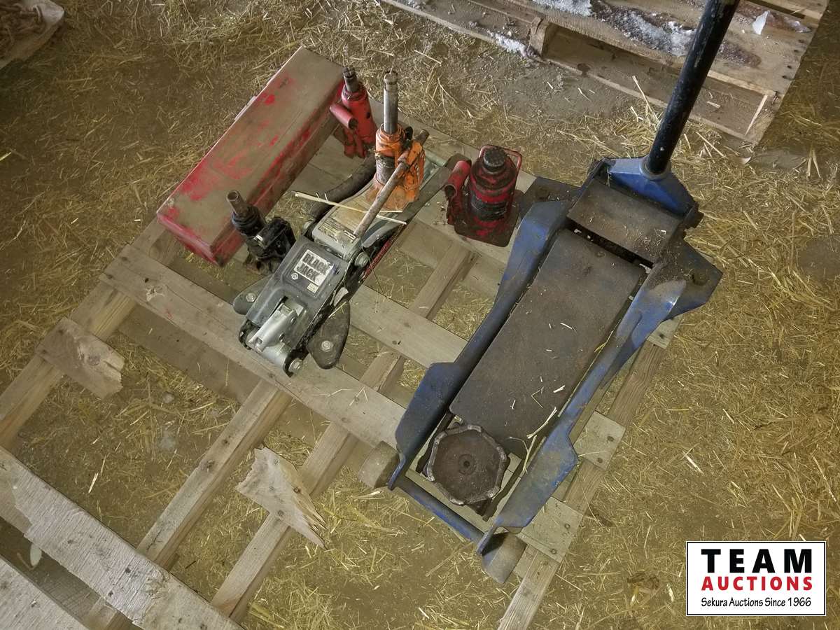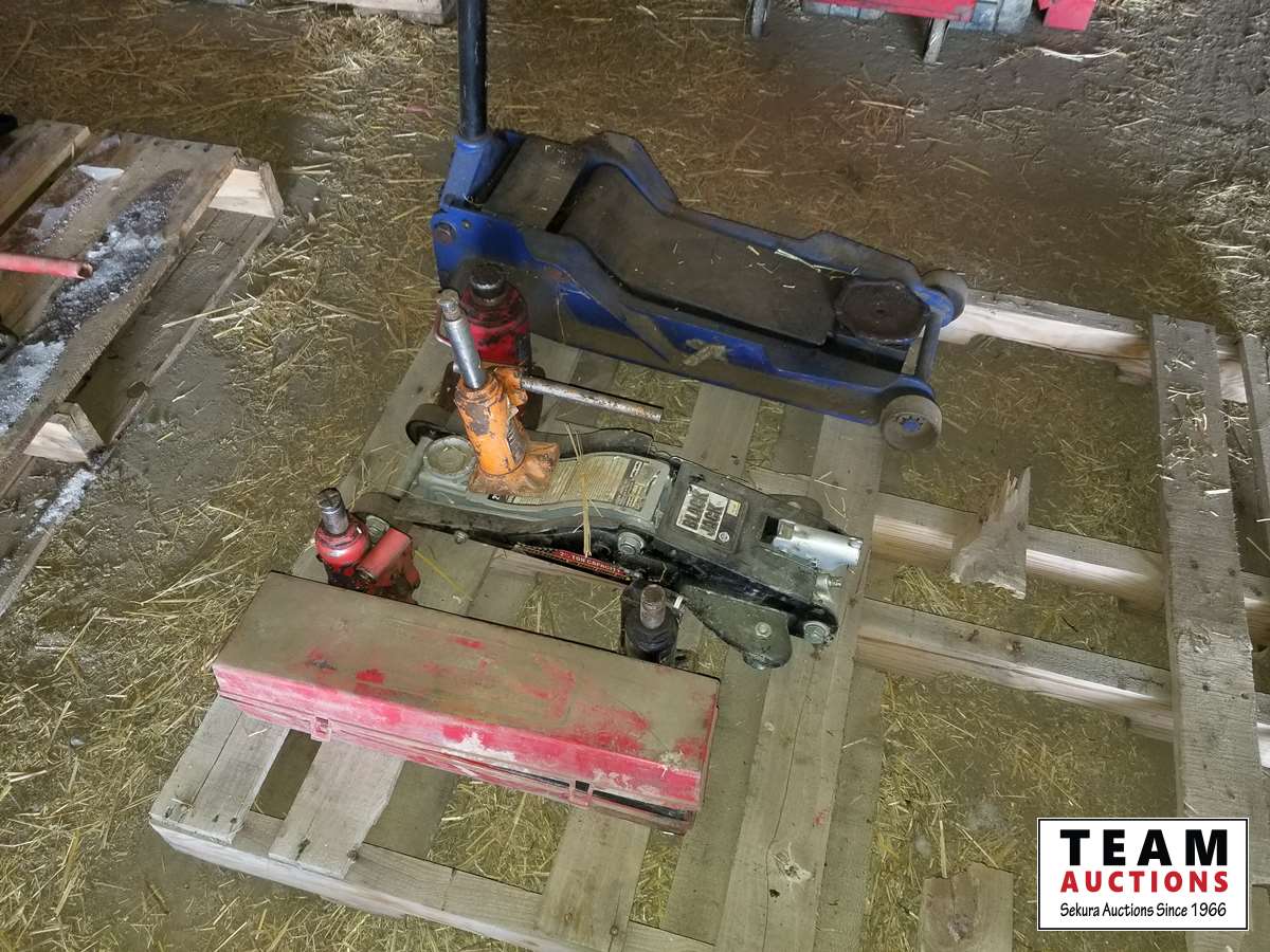 (2) floor jacks, assortment of hydraulic jacks, road side safety kit