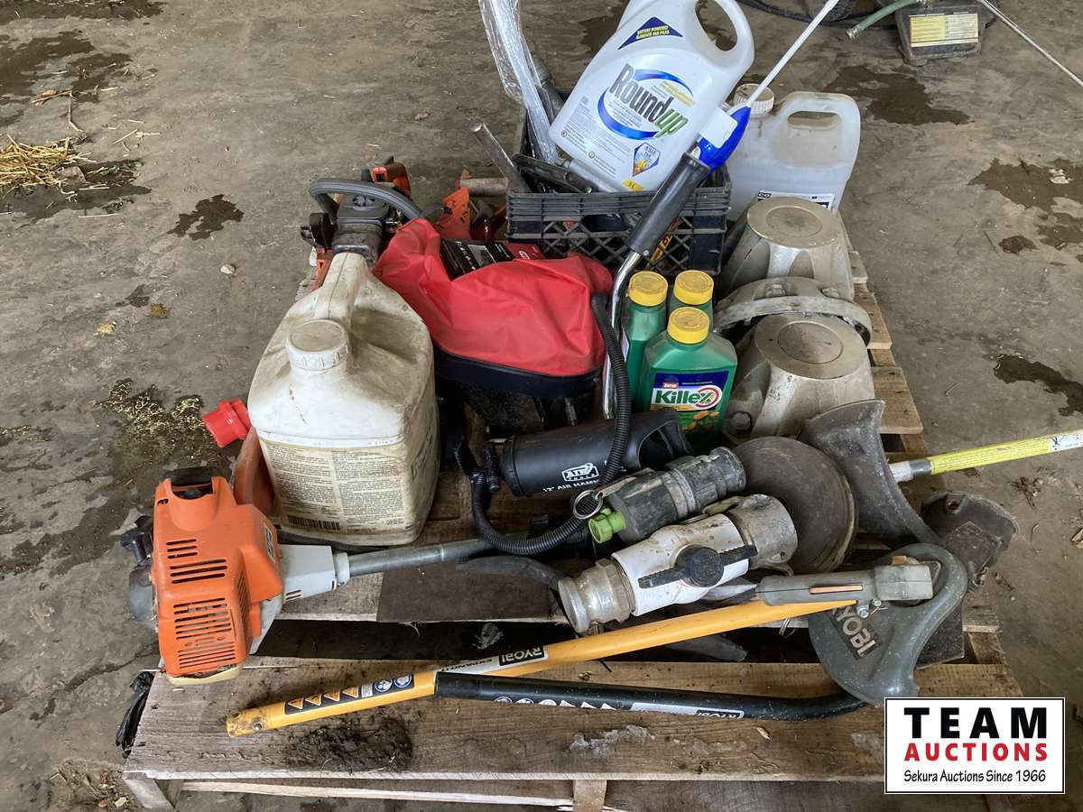 Yard chemicals, parts chainsaw, Stihl grass trimmer