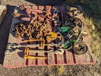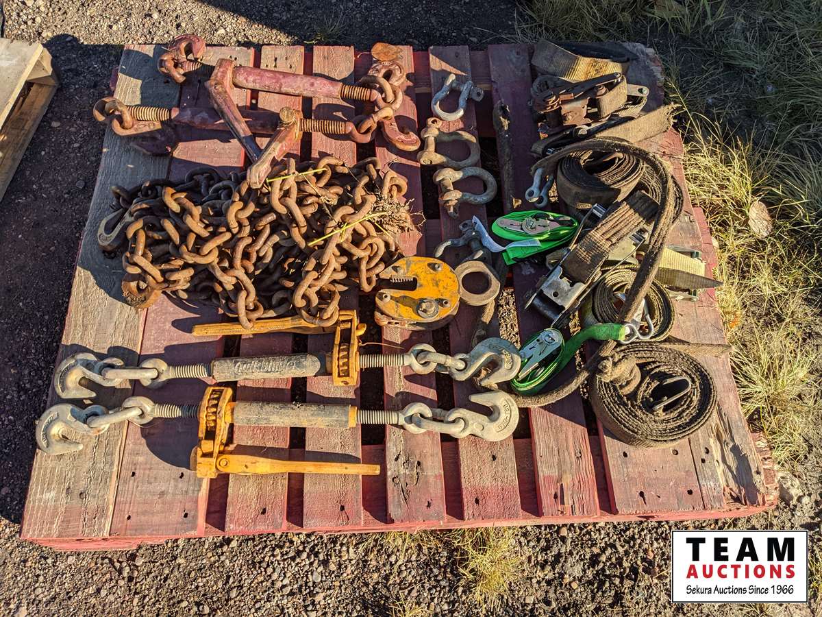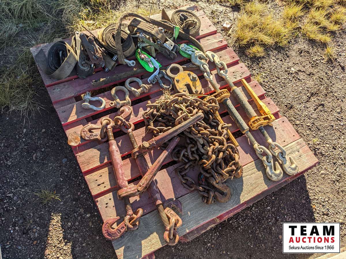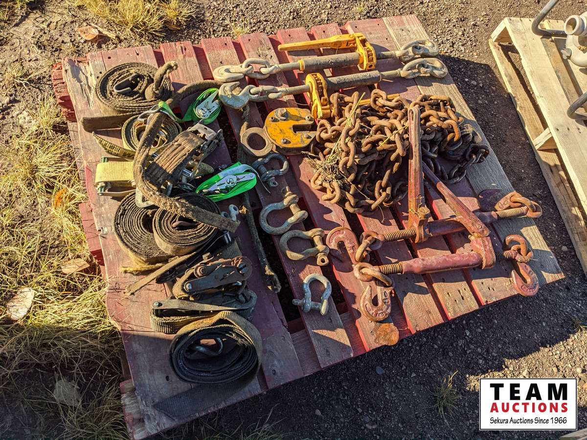 Qty of 2 inch ratchet straps, (2) 1 inch ratchet straps, qty of clevis, plate clamp