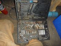 Rods, soldering gun, clamps, wire wheels, soldering torch, incomplete socket set