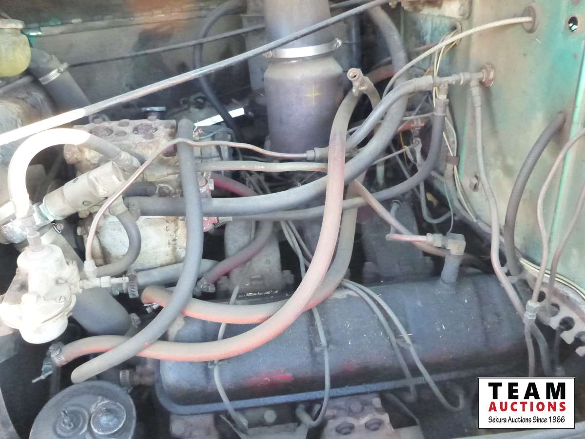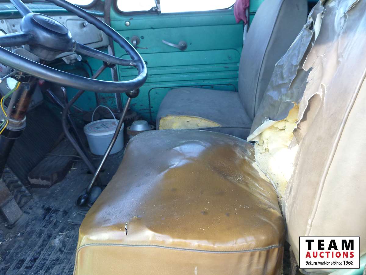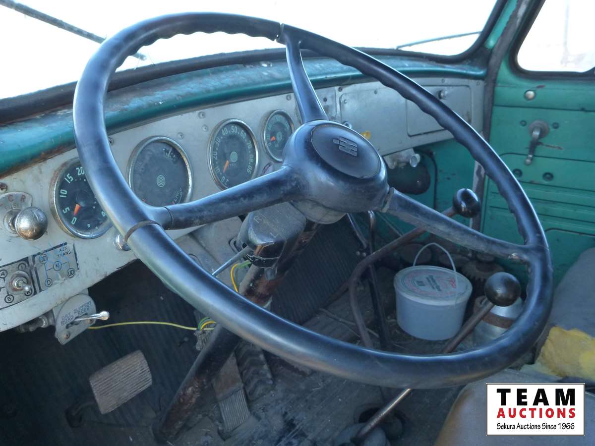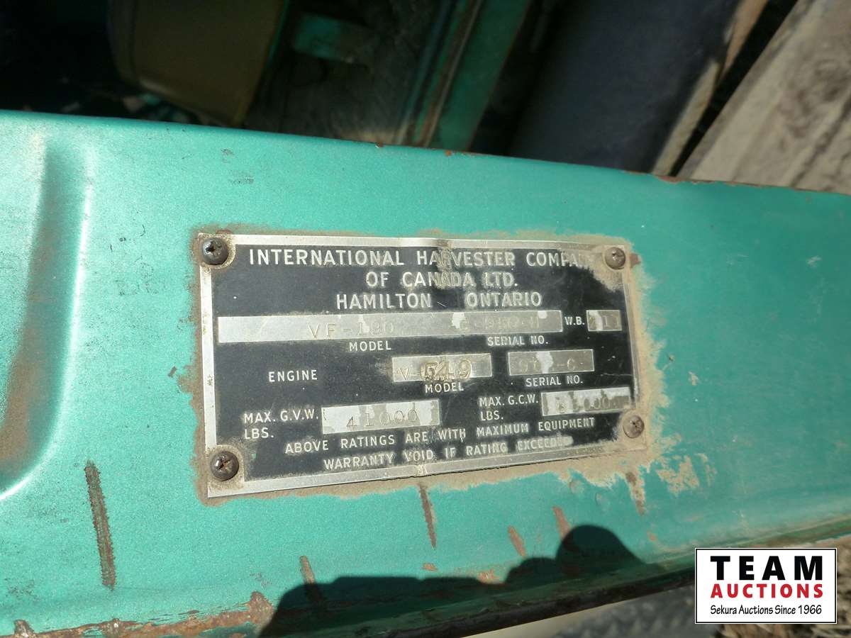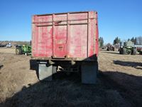 V8 gas engine, air brakes, 5 & 3 transmission, telescopic hoist, 18 ft wood box, 10.00-20 tires