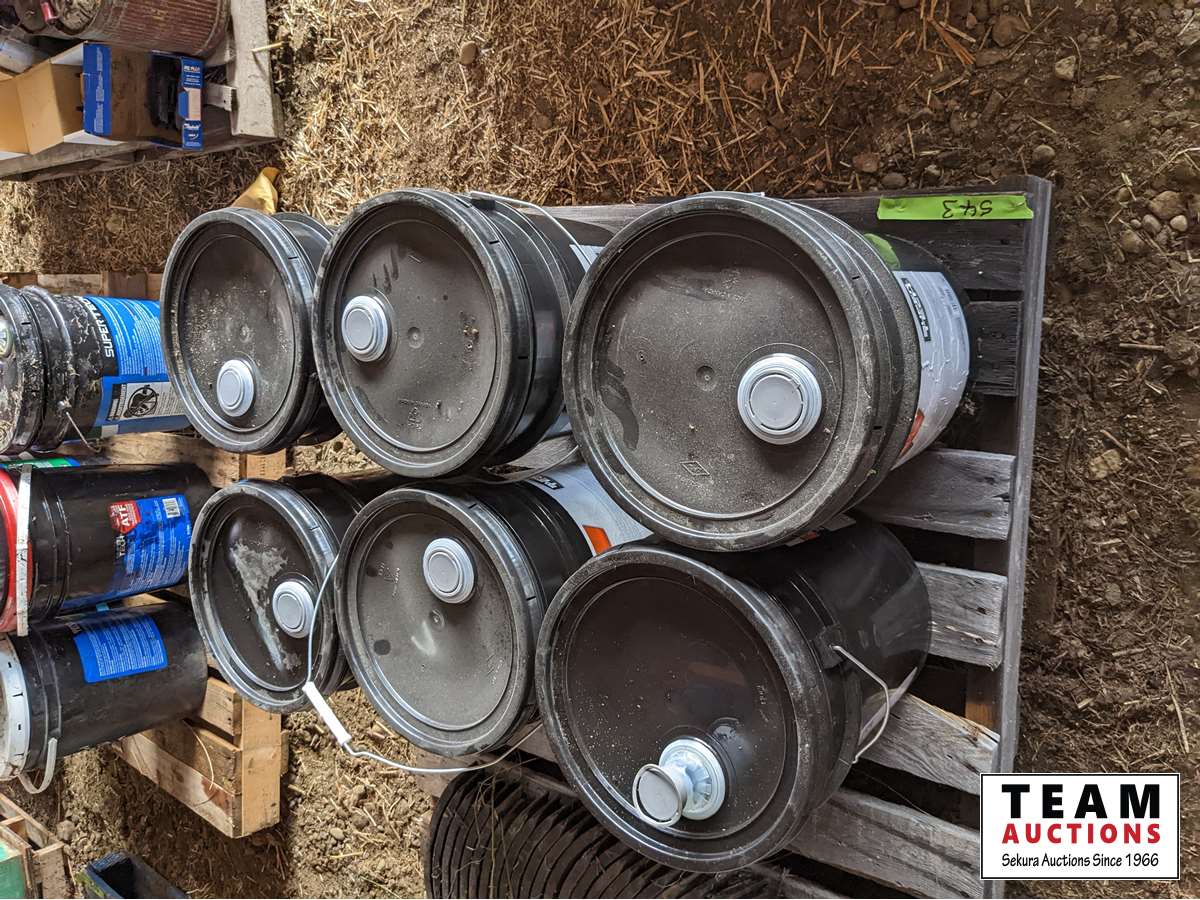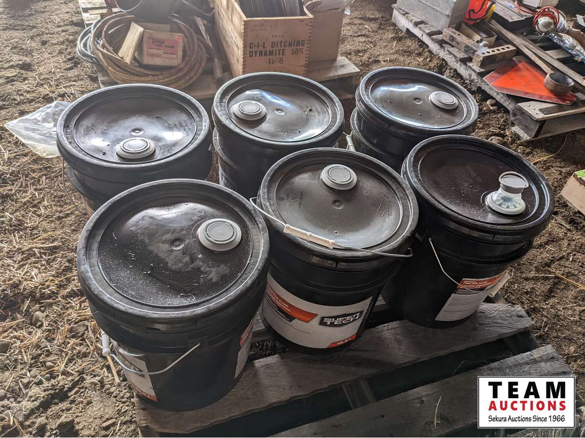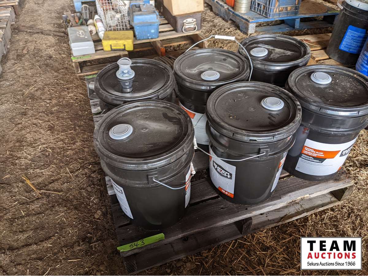80 (5) Full Pails, (1) Part Pail of Universal Transmission & Hydraulic Oil