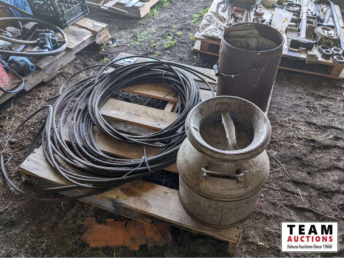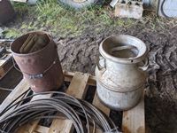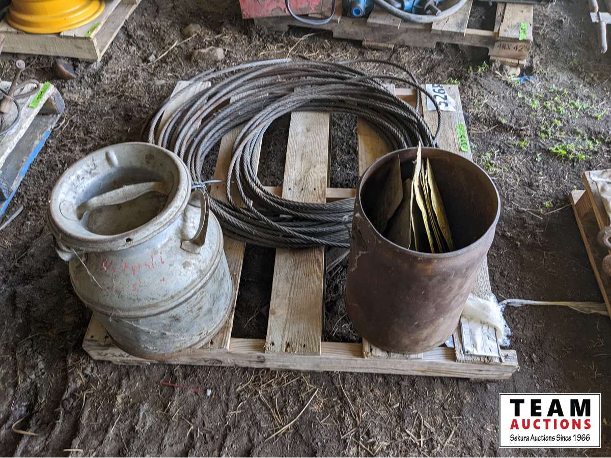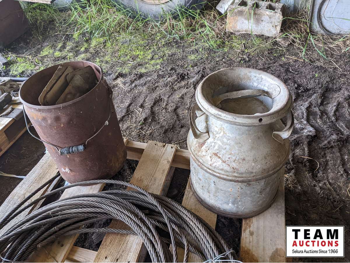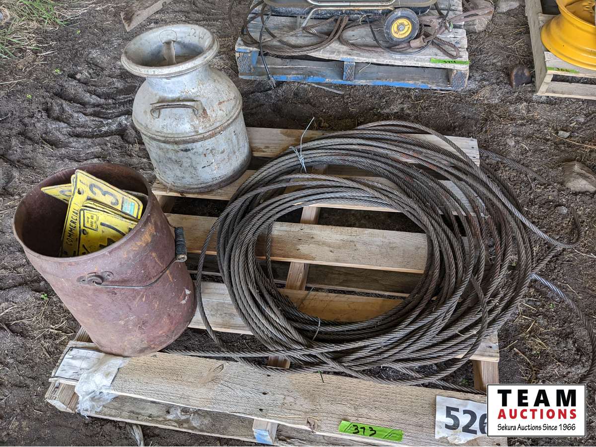 51 5 Gallon Cream Can, Roll of Cable, Various License Plates