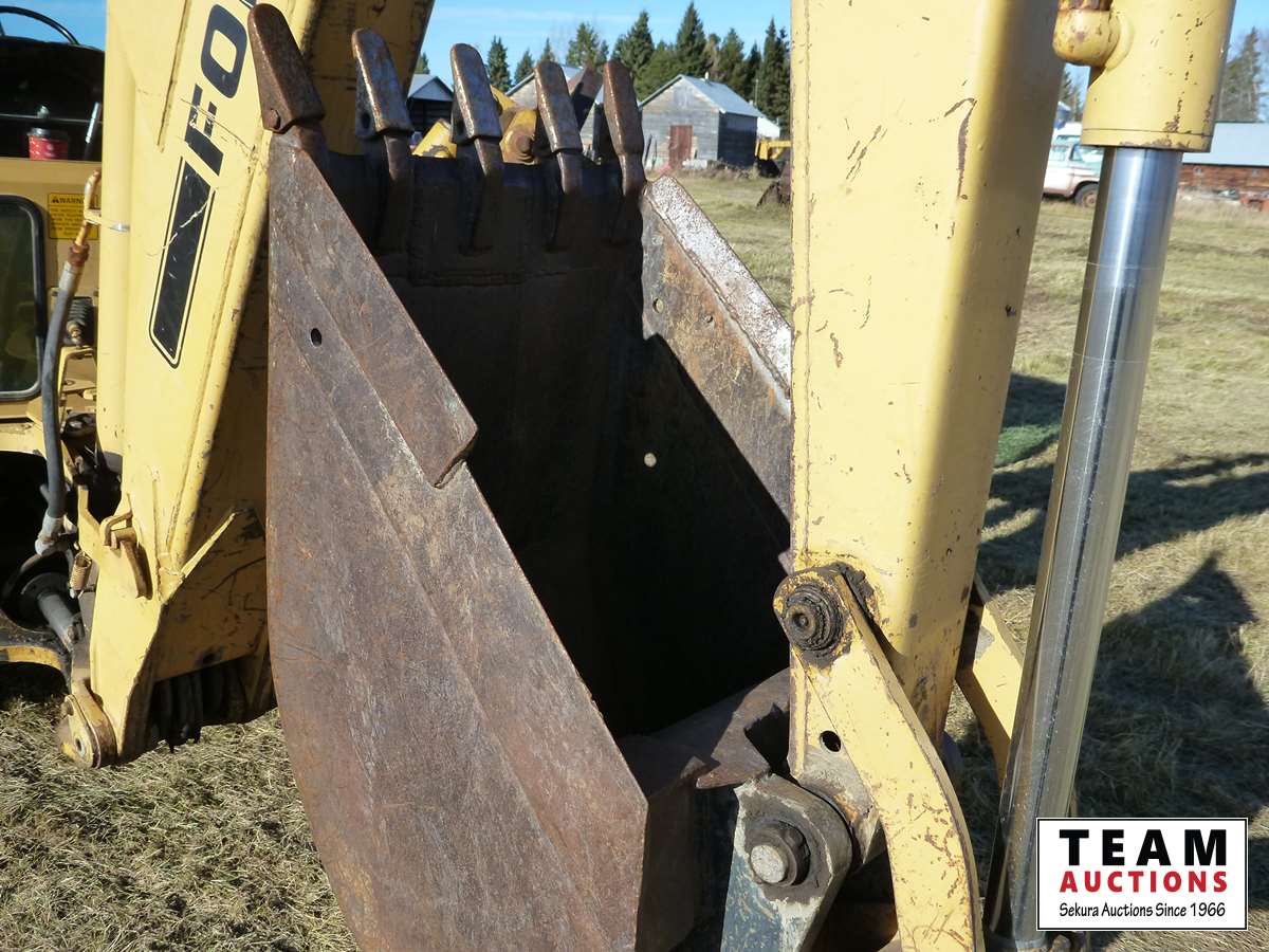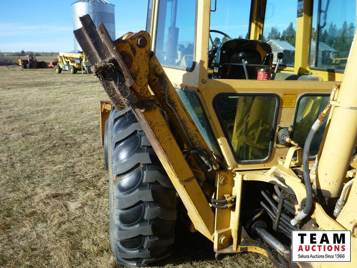 Cab, 7 ft bucket on loader, 24 inch bucket on backhoe, 11-16 front & 16.9-28 rear tires