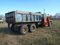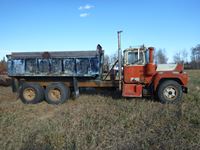 Mack 6 cylinder diesel engine, 6 speed transmission, 10.00-20 front & a mix of 10.00R20 and 11R22.5 on rear, 14 ft gravel box