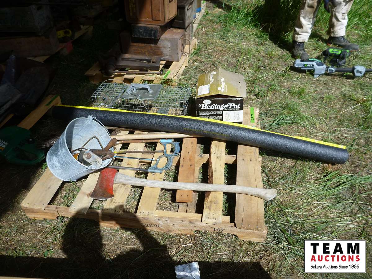 Hack saws, axe, crock pot, live animal, miscellaneous tool s and items