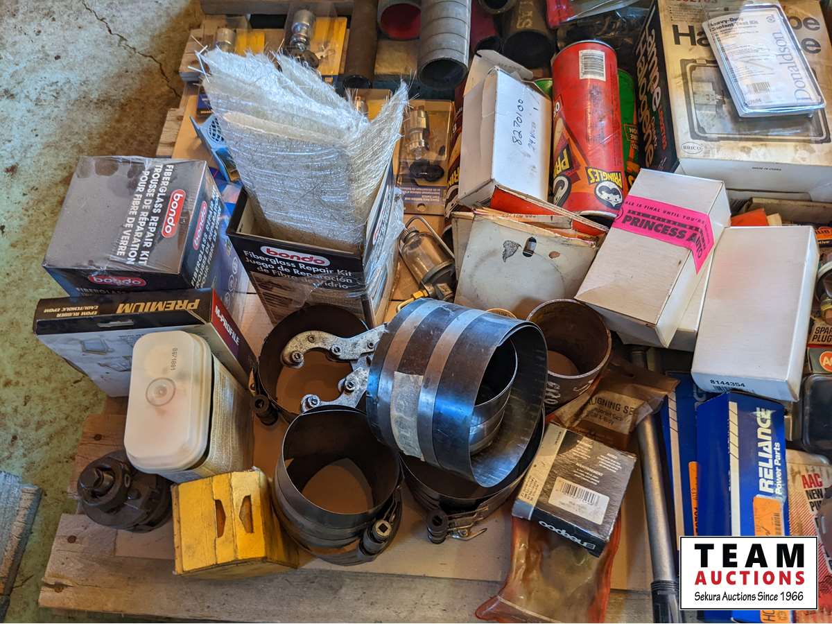 Miscellaneous parts, fibreglass repair kit, seals, gauges, ring compressors, rolls of gasket material, electrical parts