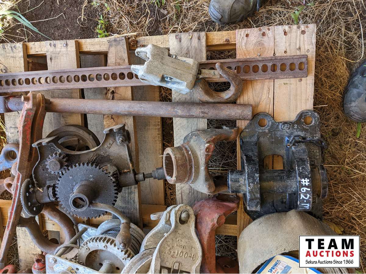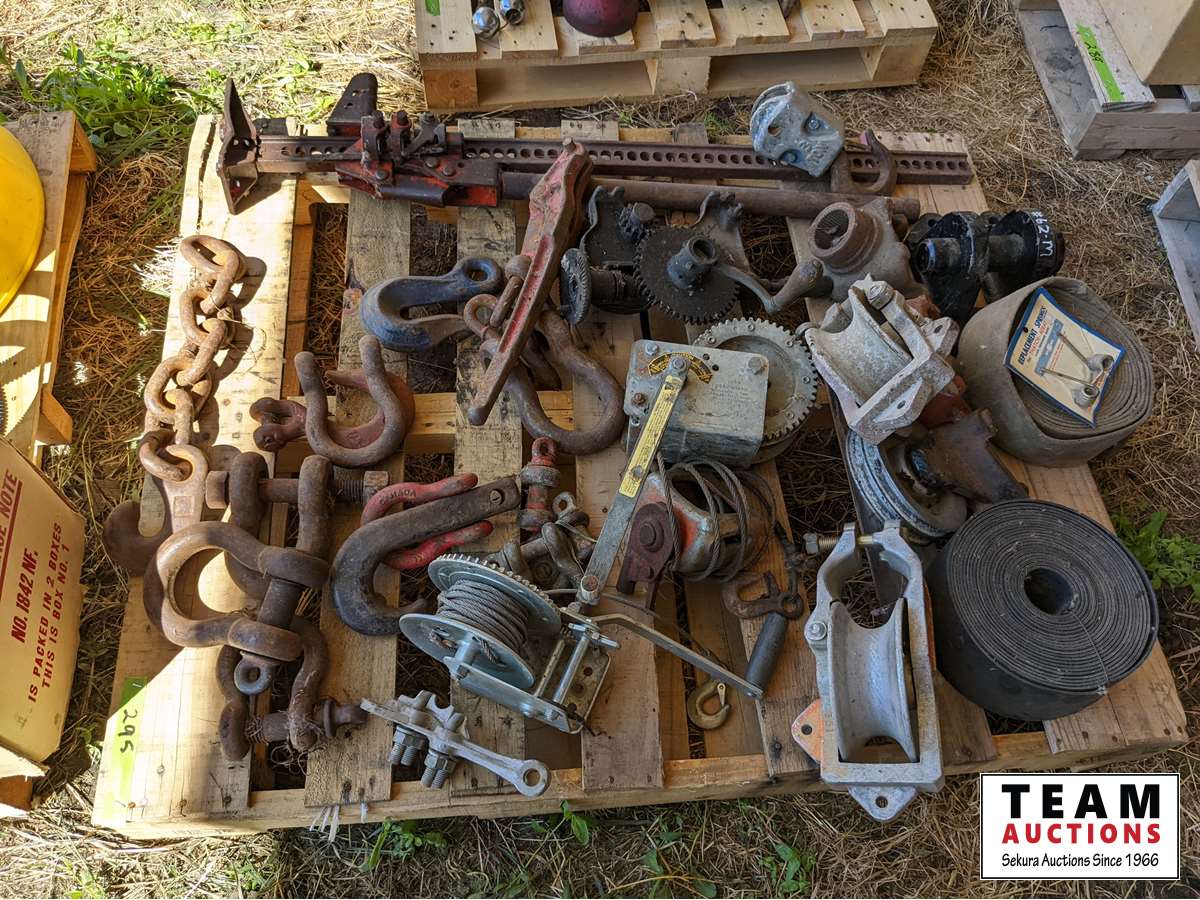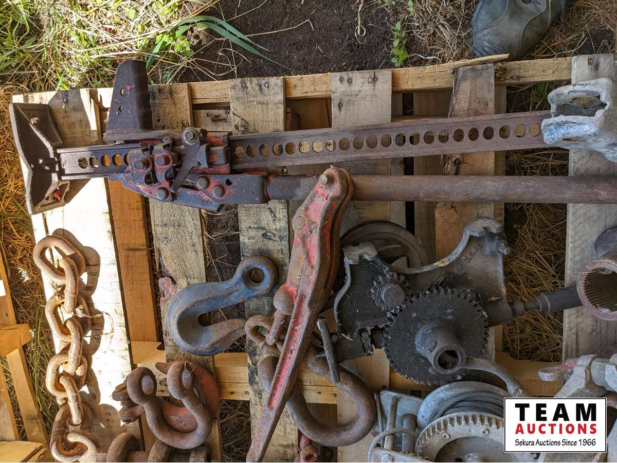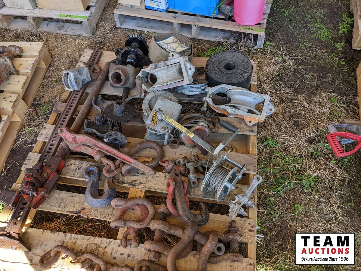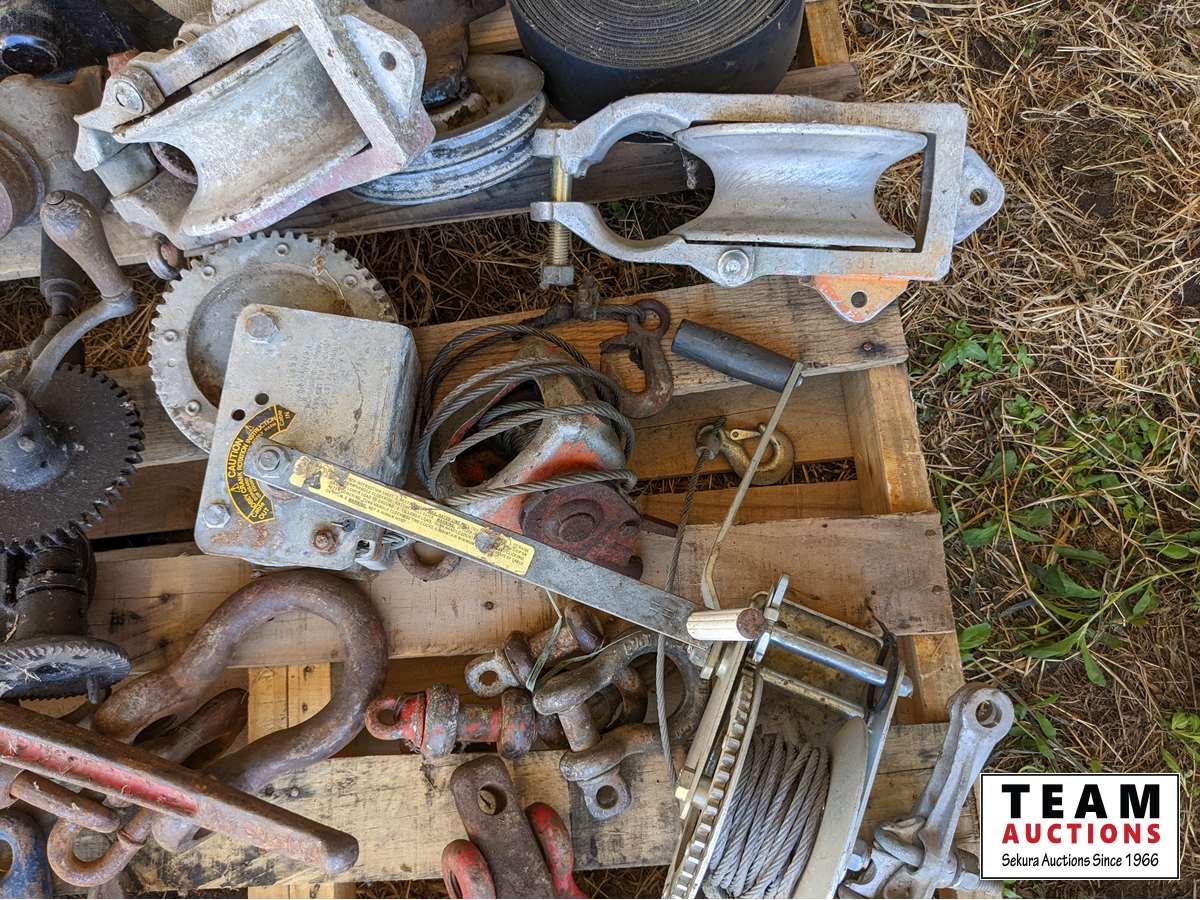 Jack All, shackles, (2) cable winches, pullies, sprockets, belting, miscellaneous parts
