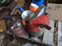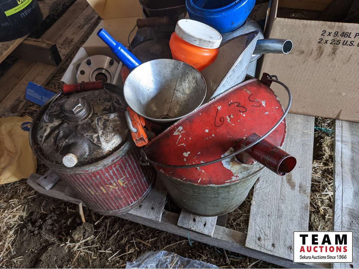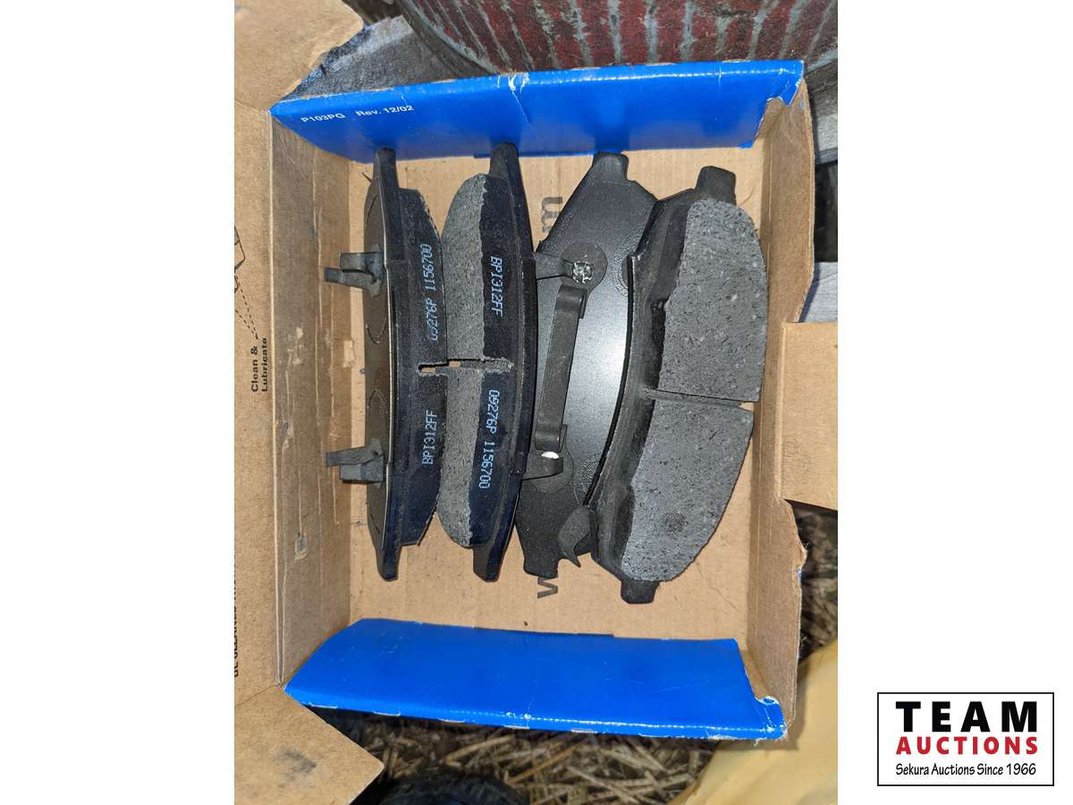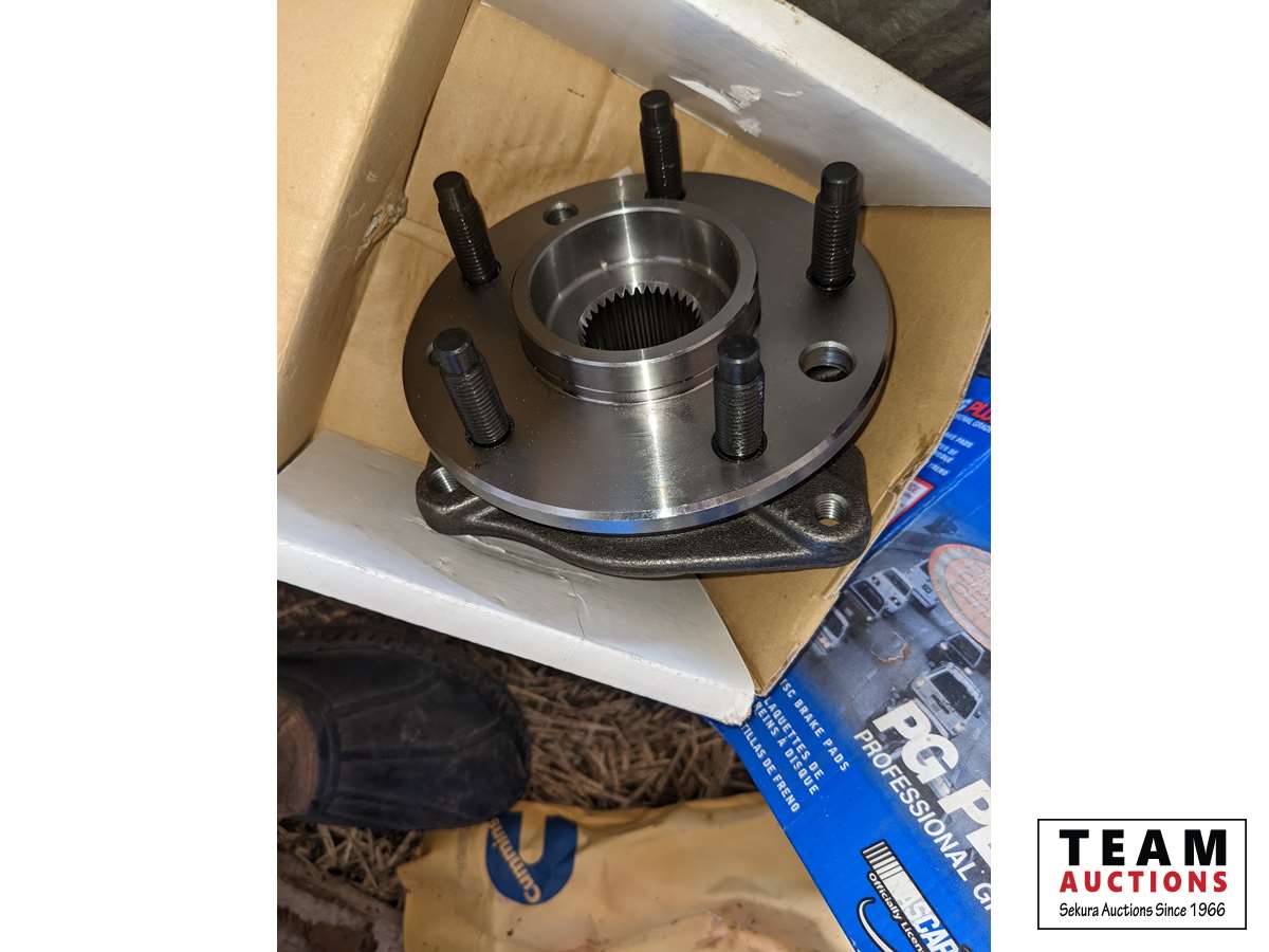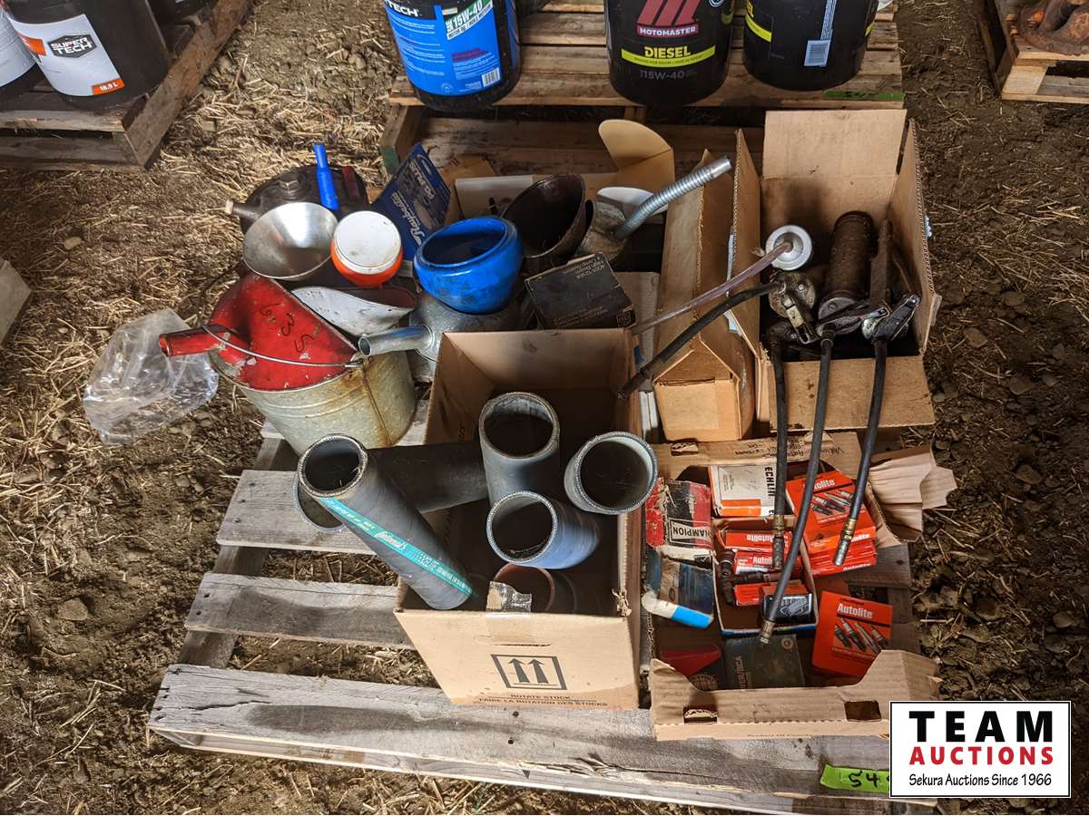 Rad hoses, spark plugs, gas cans, oil cans, funnels, new implement jack, new hub, brake pads, miscellaneous