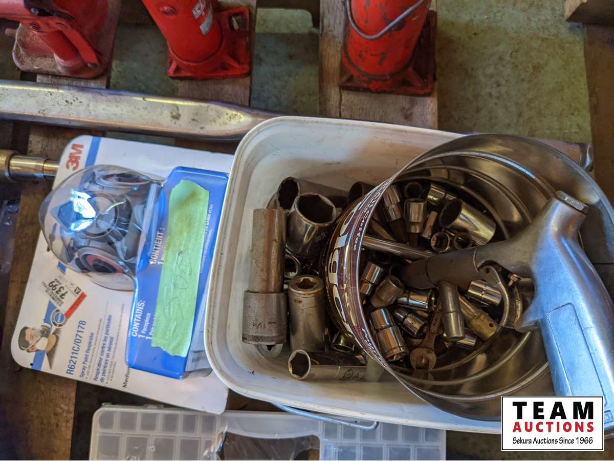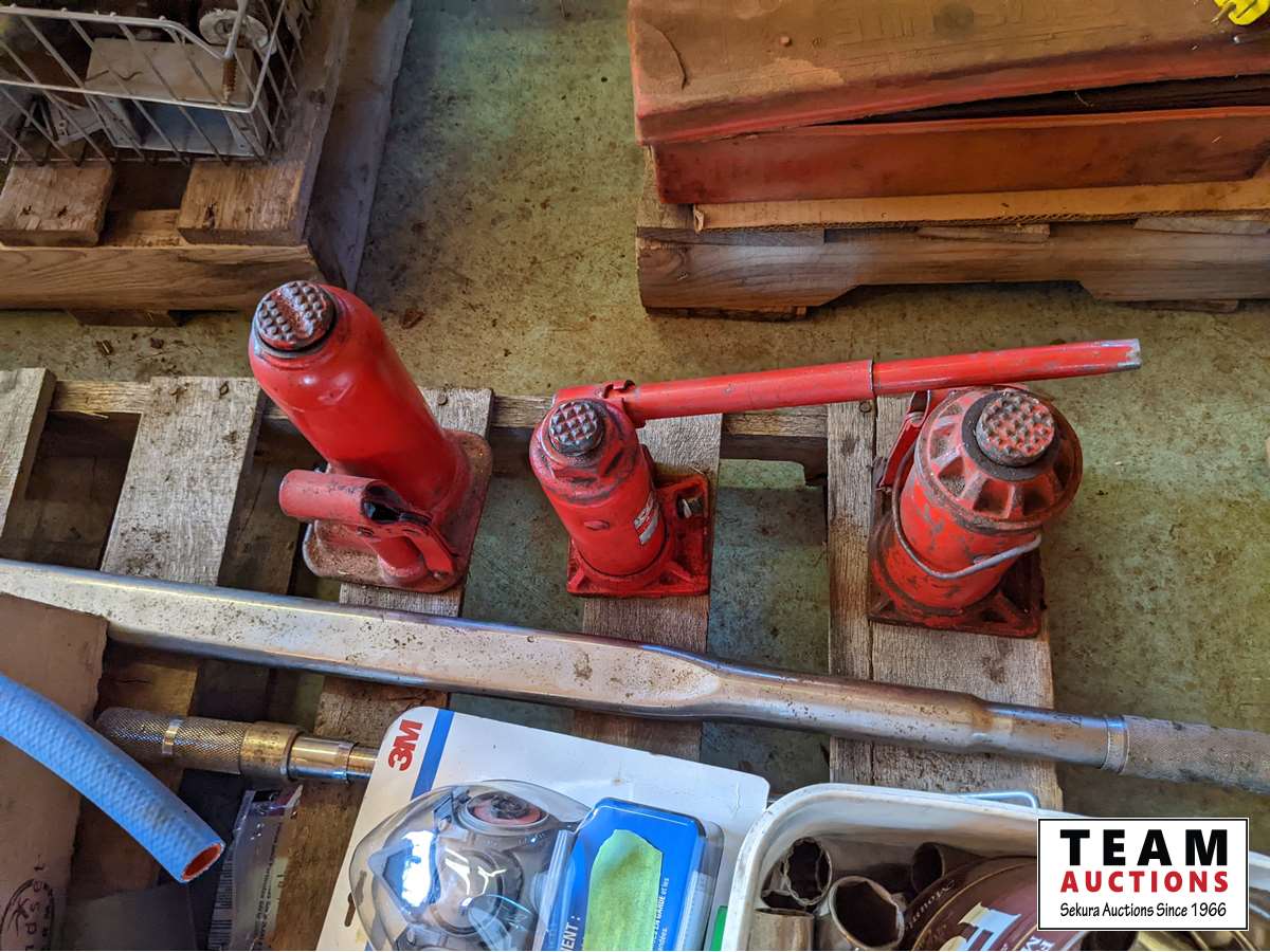 (3) bottle jacks, 2/4 inch torque wrench, 1/2 inch torque wrench, sockets, mirrors, heater hose lynch pin kit, o-ring kit, miscellaneous items