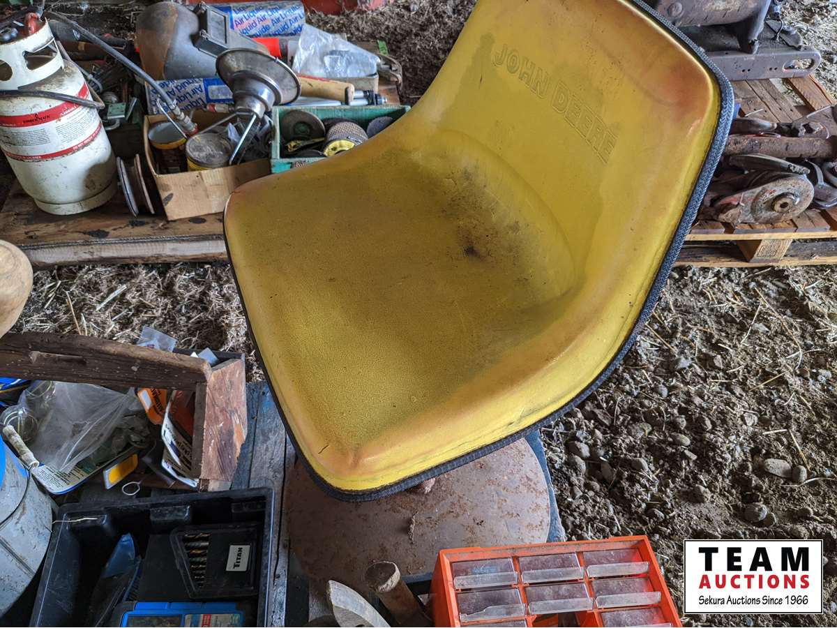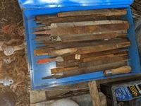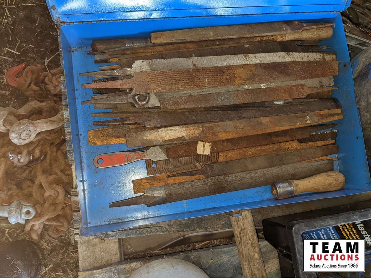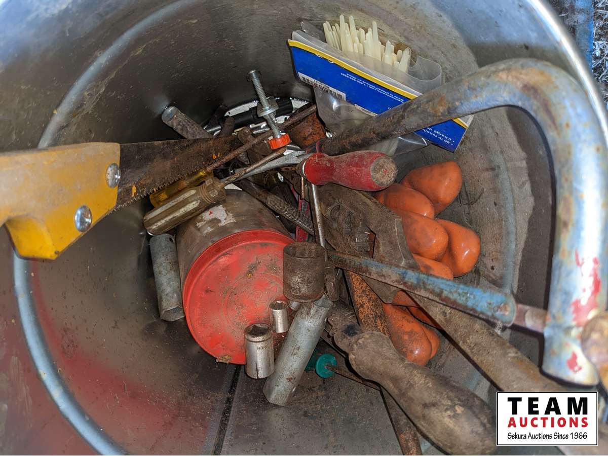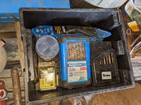 Chain hooks, files, shackles, hand tools, drill bits, Shop Built stool, miscellaneous hardware
