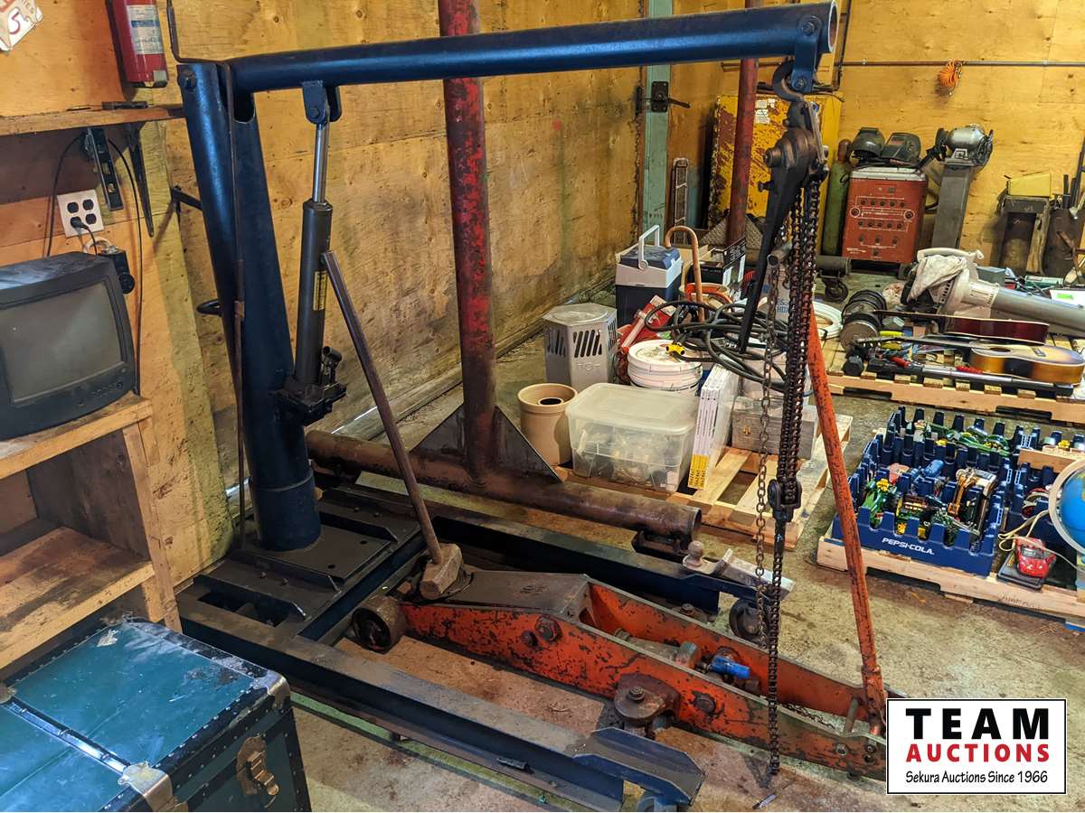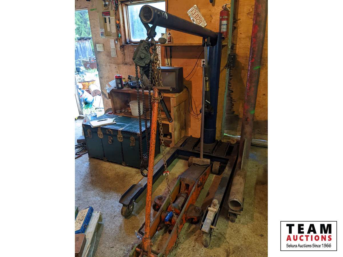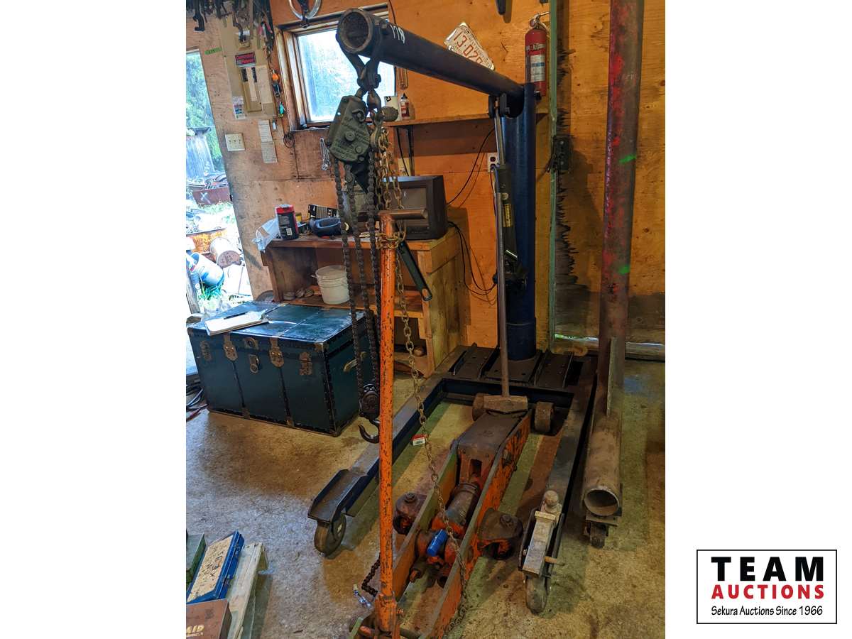 340 Custombuilt Portable Hydraulic Shop Crane, Large Floor Jack & Sledge Hammer