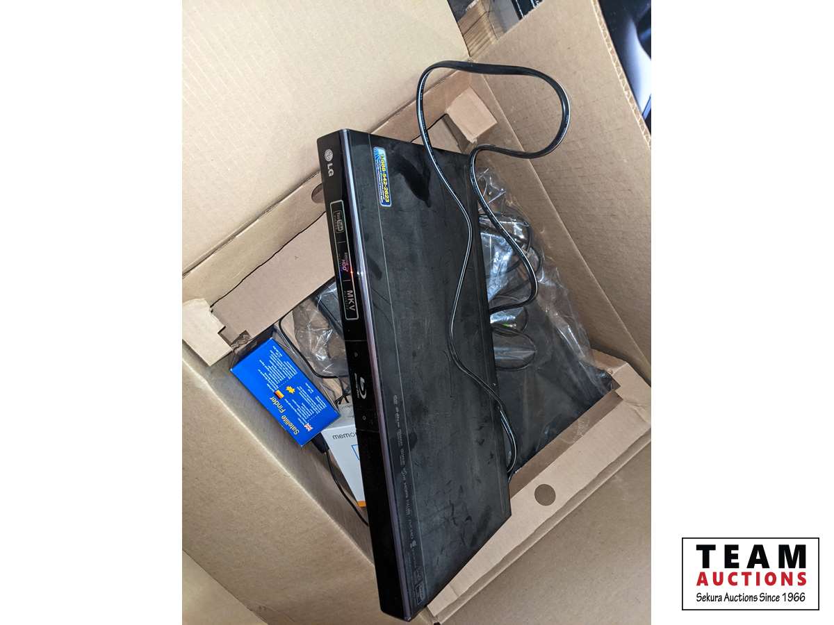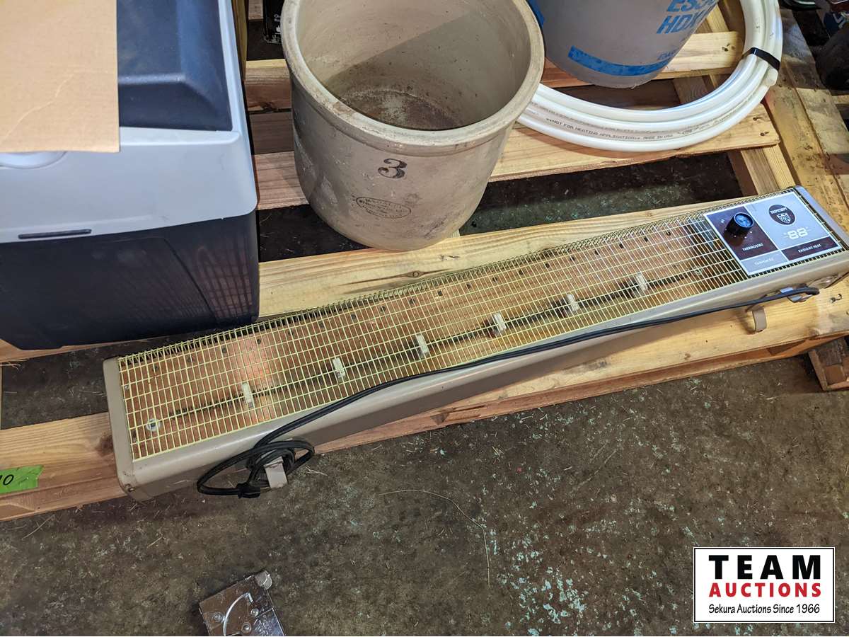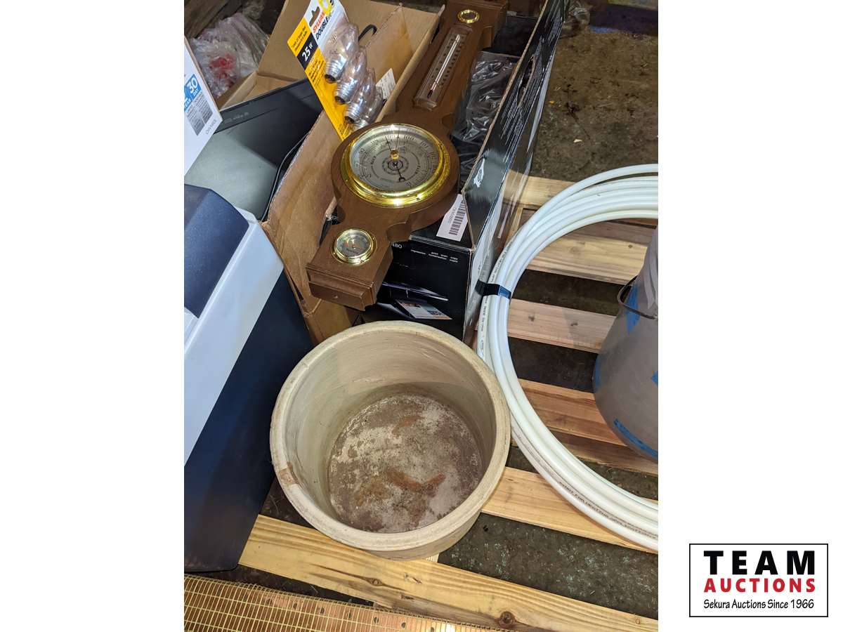 Heater, cooler, #3 crock, Humming bird feeder, Blue Ray CD player, bulb, miscellaneous items