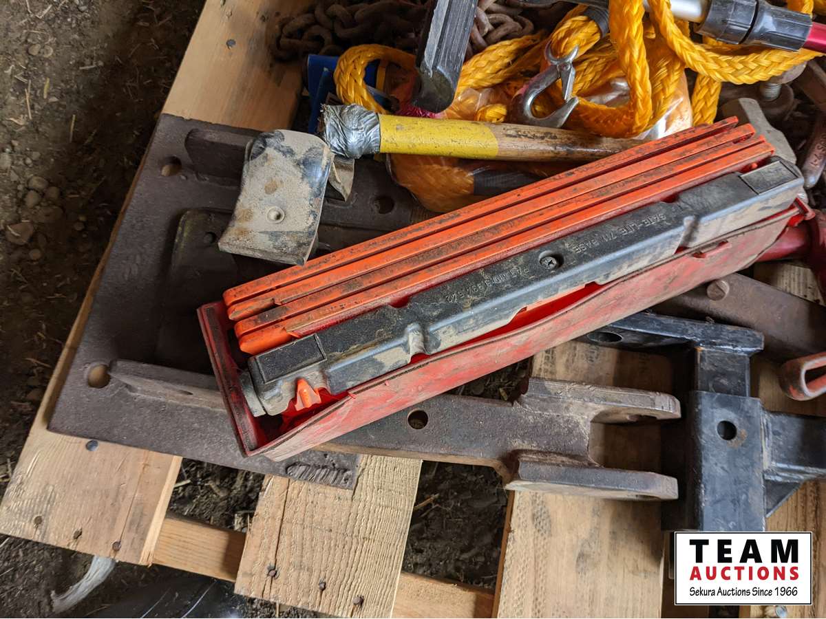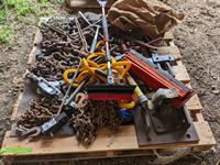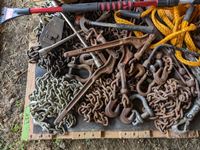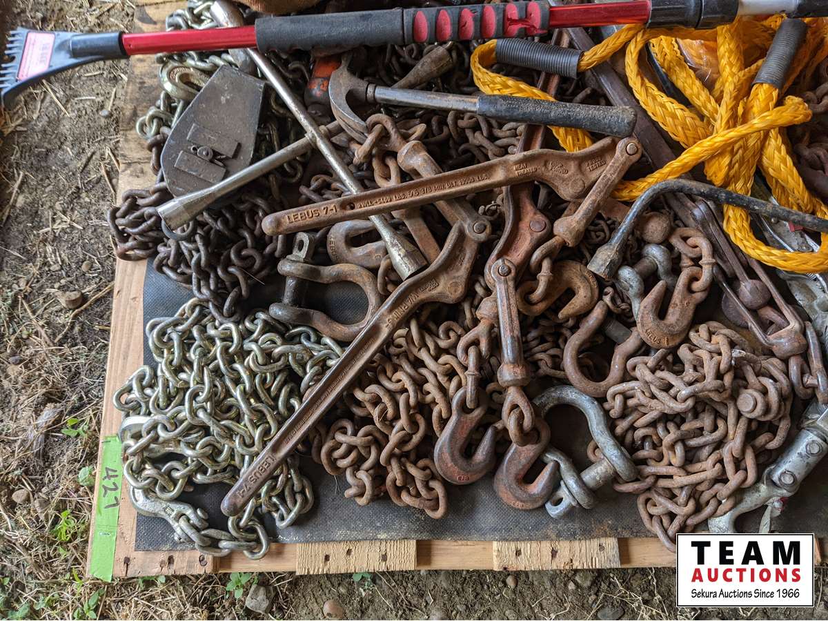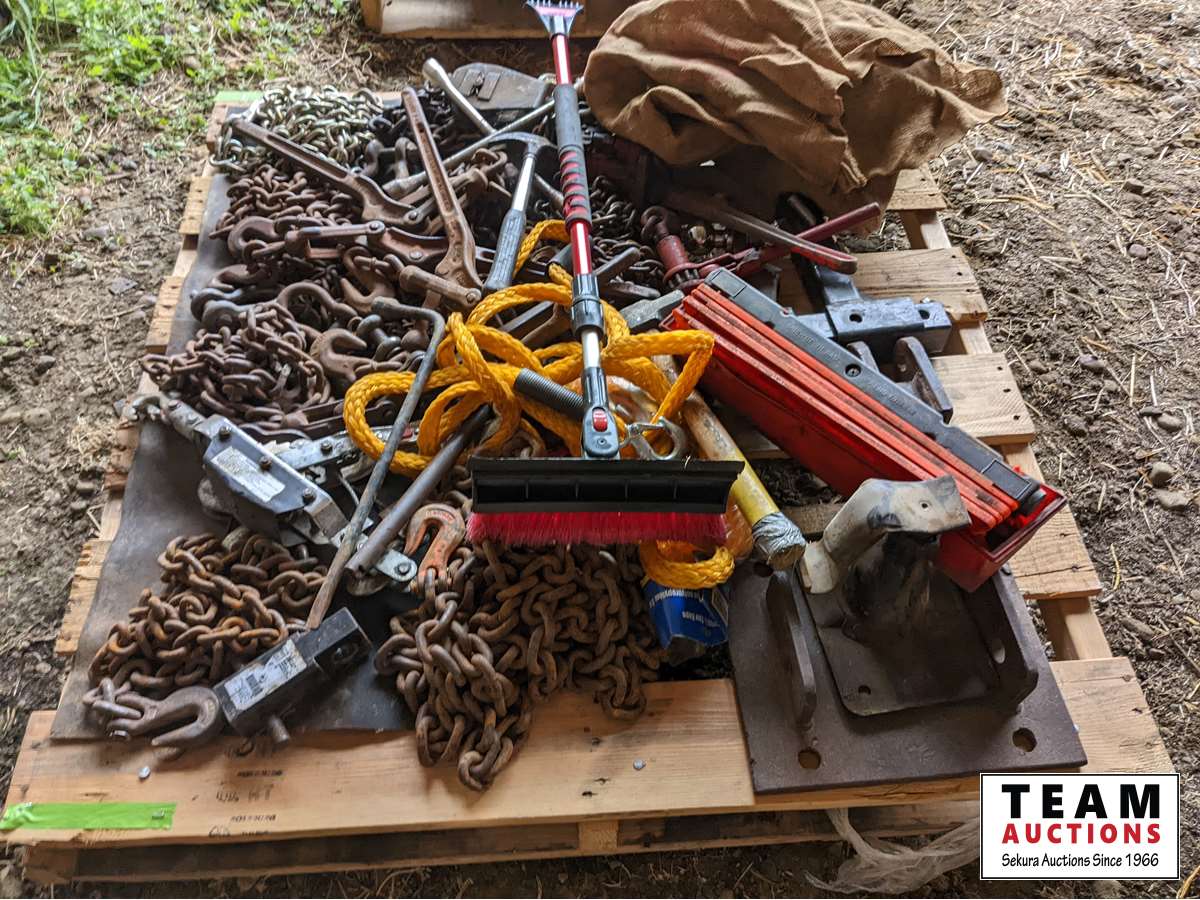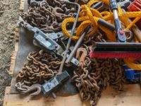 Flares, chains, load binders, hand tools, come-a- long, tow rope, miscellaneous items