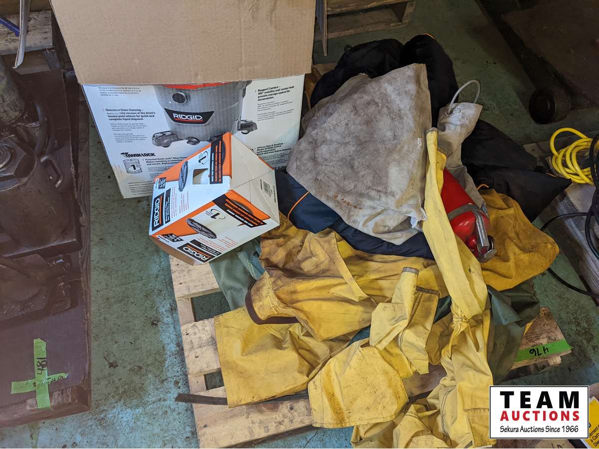 366 Rain Gear, Ridgid Shop Vac, Fire Extinguisher
