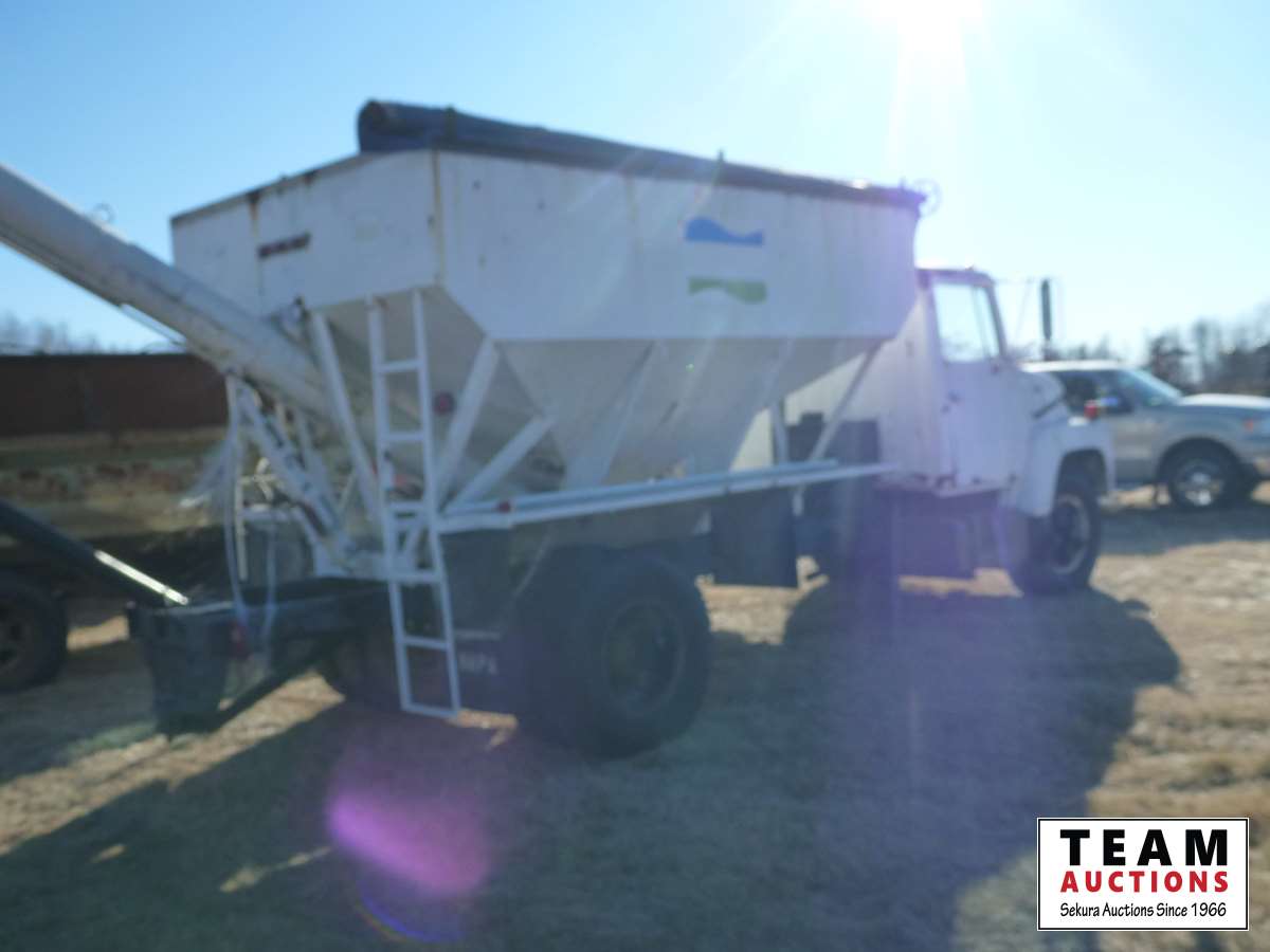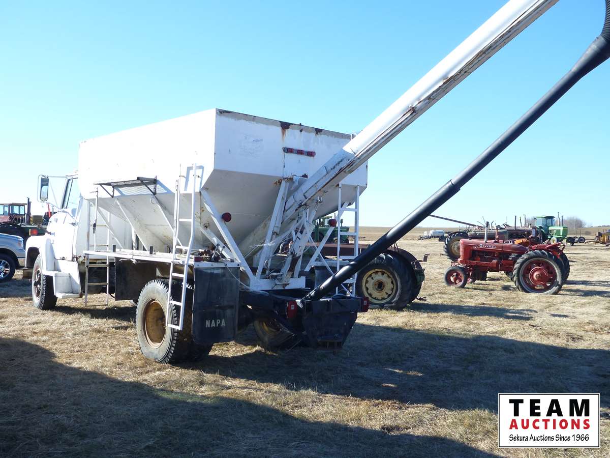 V8 gas engine, 5 & 2 transmission, 11.00-20 front & 10.00R20 rear duals, single hopper drill fill hopper, hydraulic auger