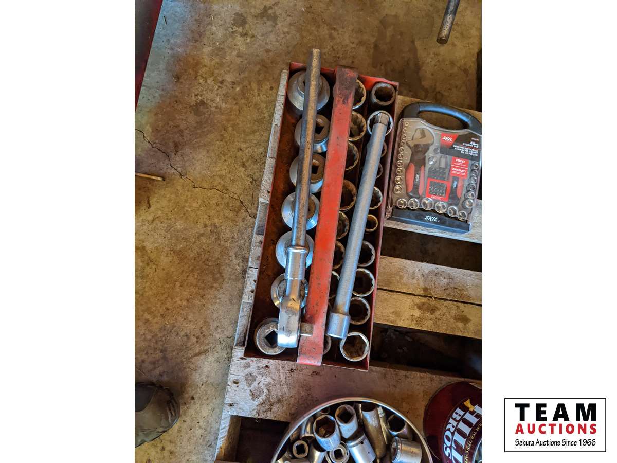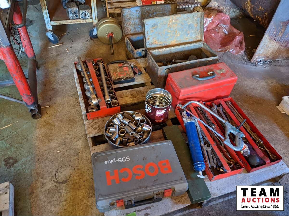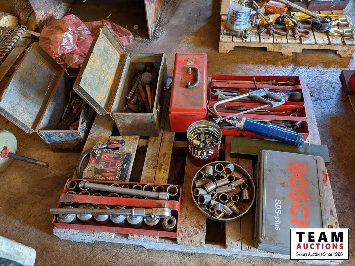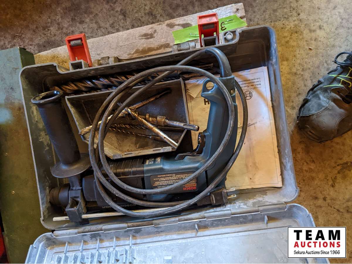 3/4 inch Socket set, Bosch SDS Hammer Drill, assorted wrenches and sockets, miscellaneous tools