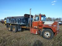 Mack 6 cylinder diesel engine, 6 speed transmission, 10.00-20 front & a mix of 10.00R20 and 11R22.5 on rear, 14 ft gravel box