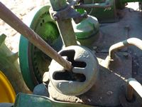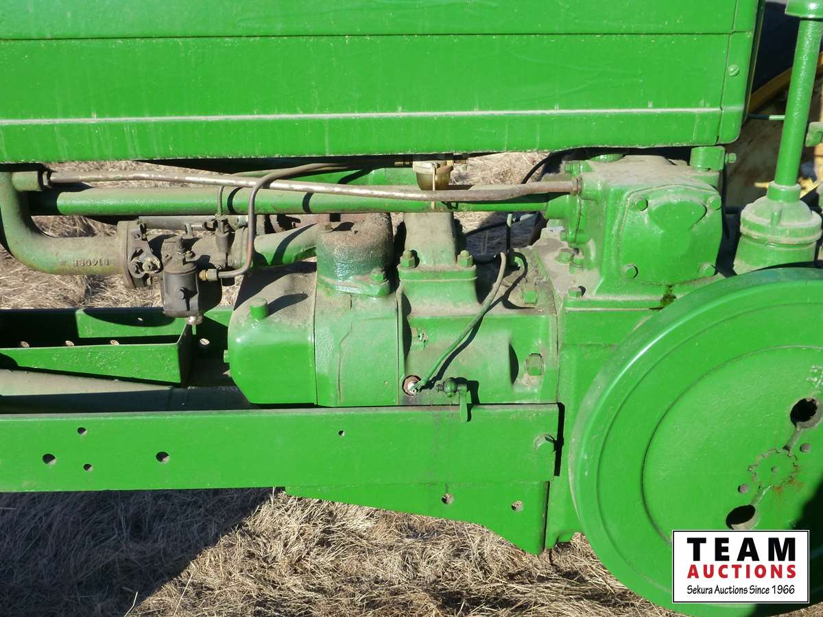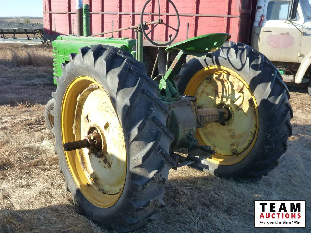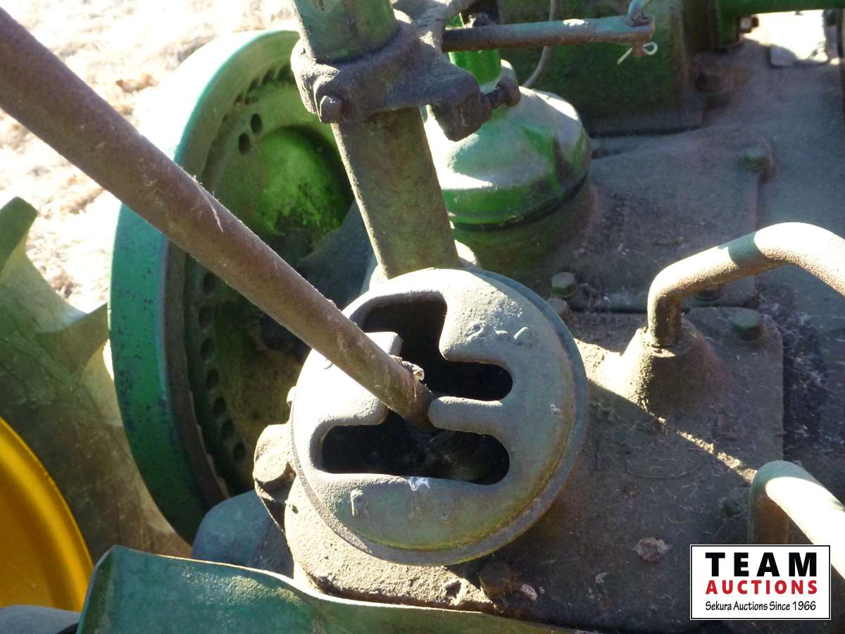 2 cylinder gas engine, flywheel start, 4 speed transmission, 6.00-15 front & 11-38 rear tires