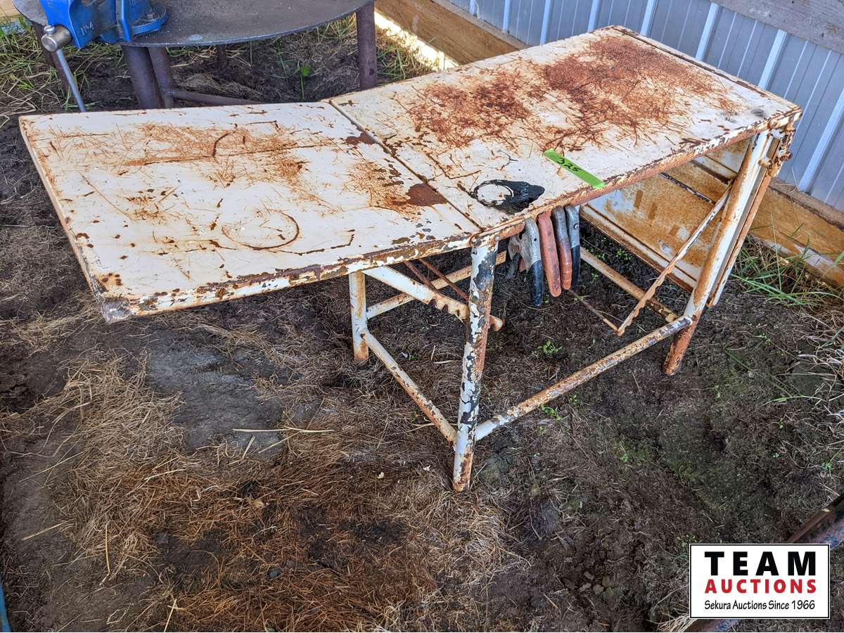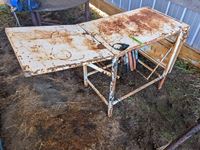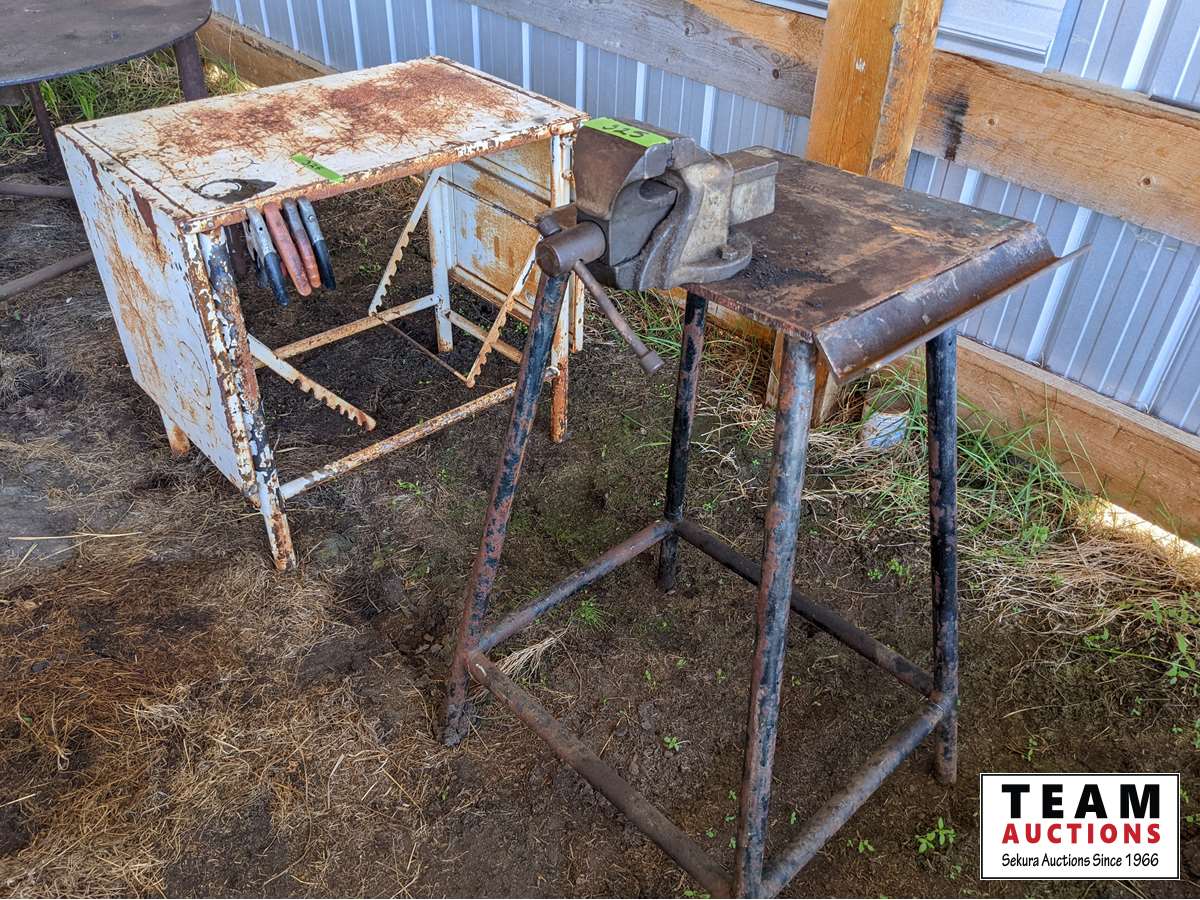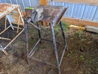 127 Vice Stand with Vise, White Metal Table with Folding Extensions