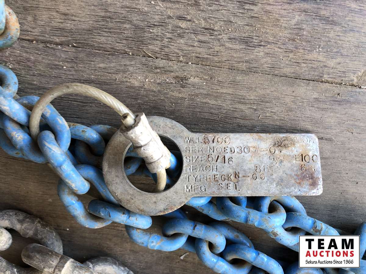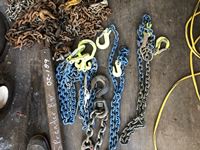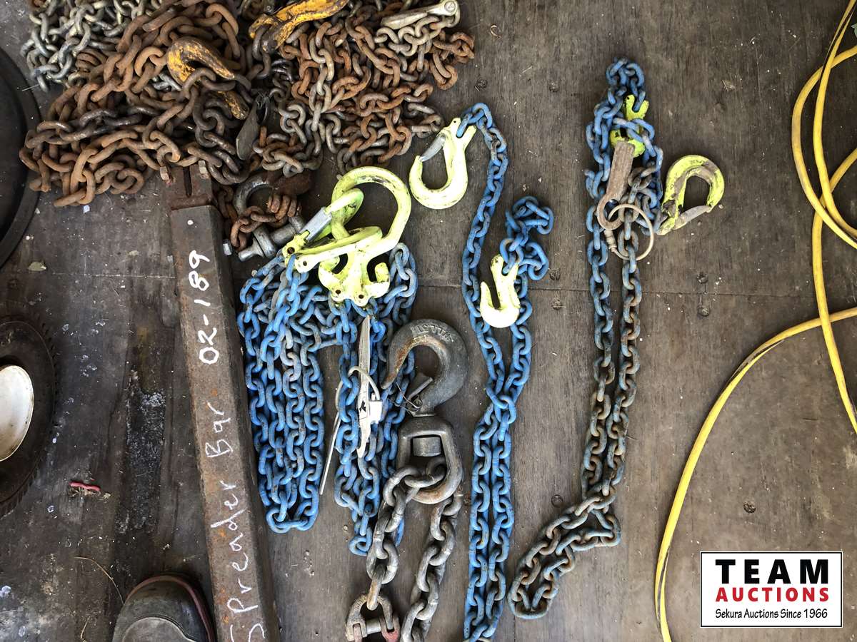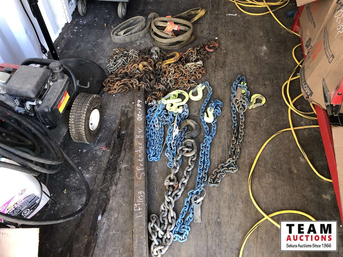 Nylon slings, lifting chain, assorted chains, Shop Built adjustable spreader bar