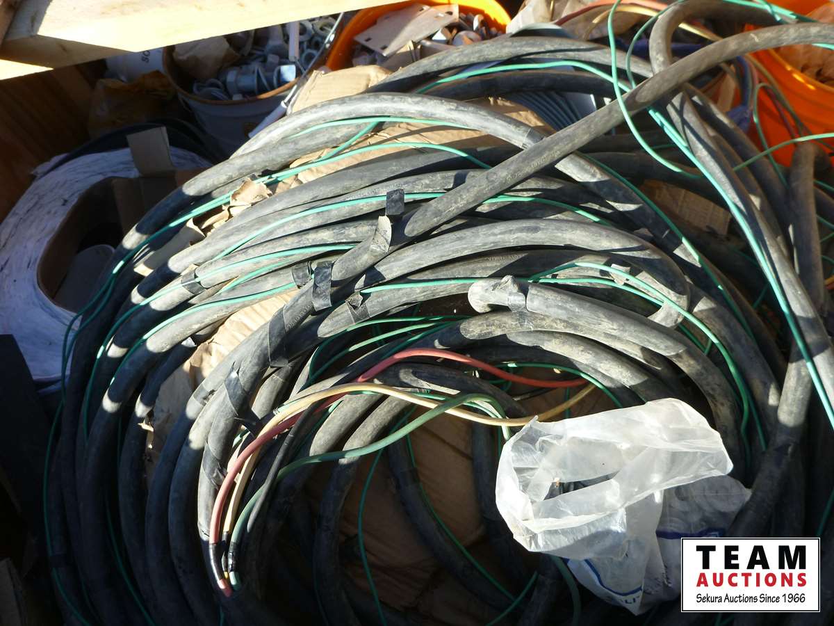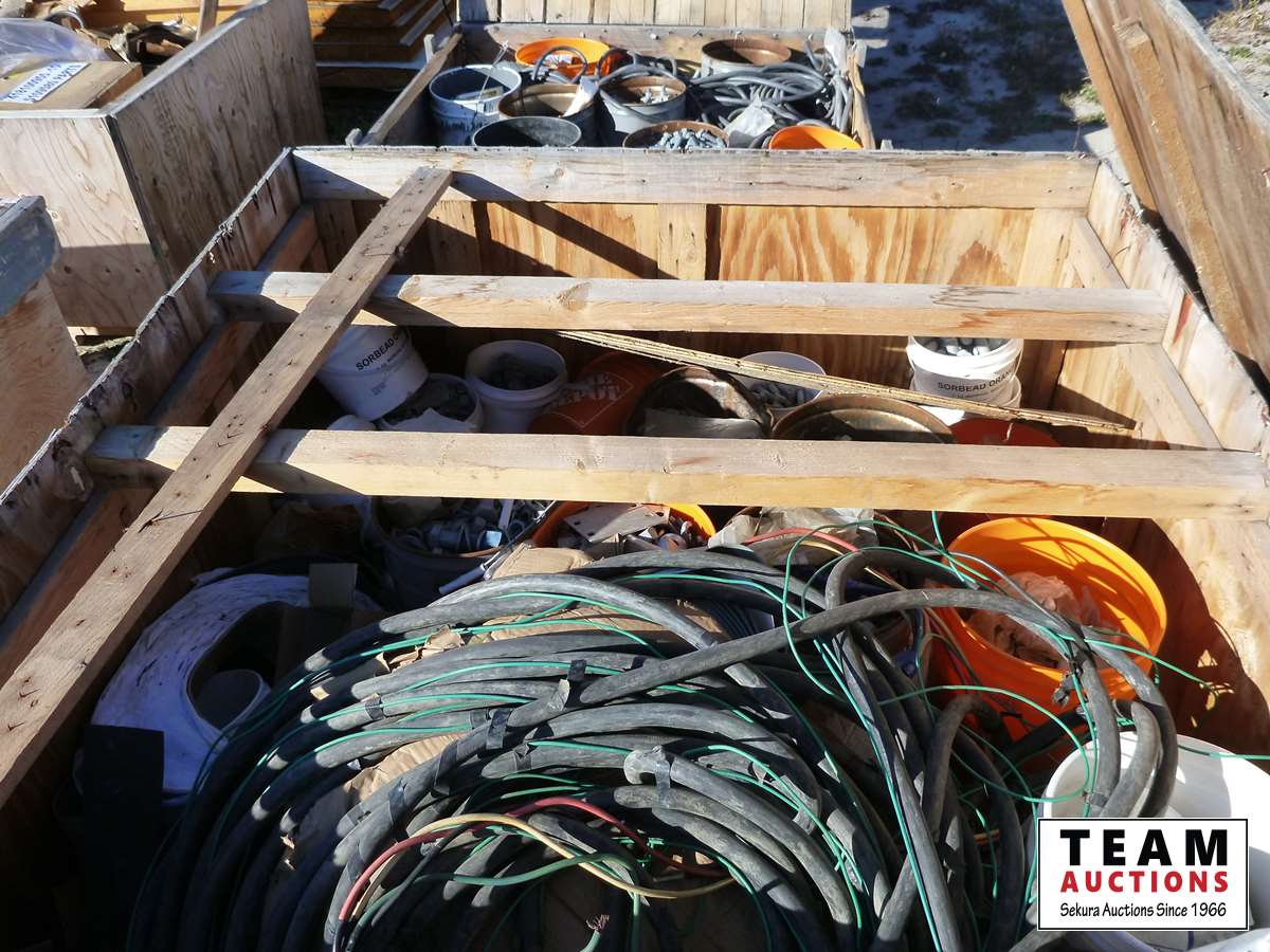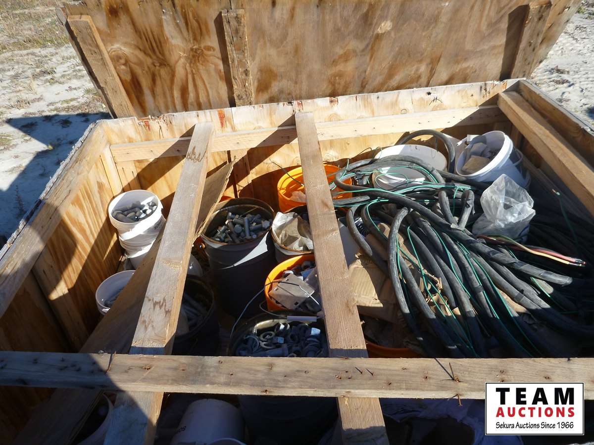 196 Large Wood Box of Bolts, Nuts & Electrical #4 Cable
