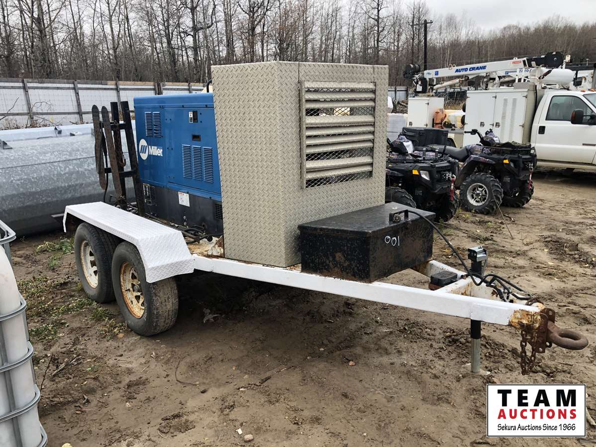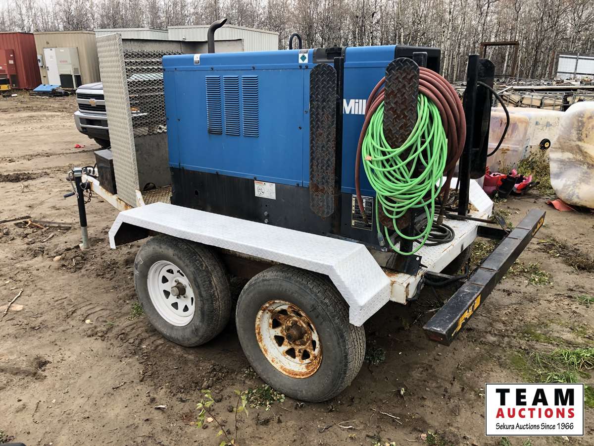 138 Miller Big Blue Air Pak Welder/Air Compressor/Generator on 9 Ft T/A Trailer