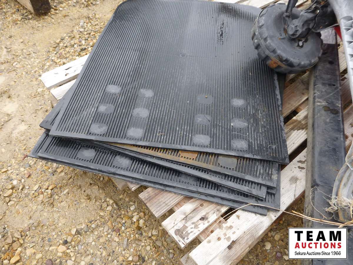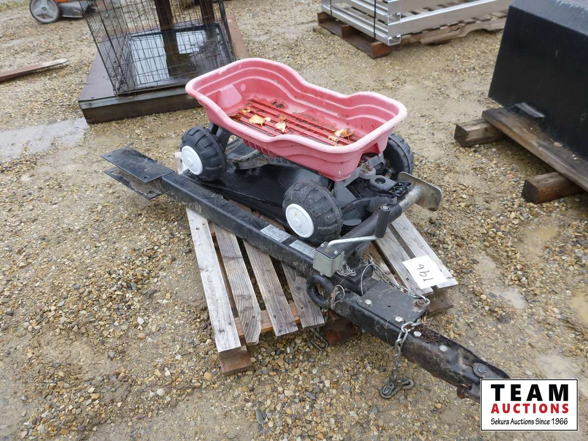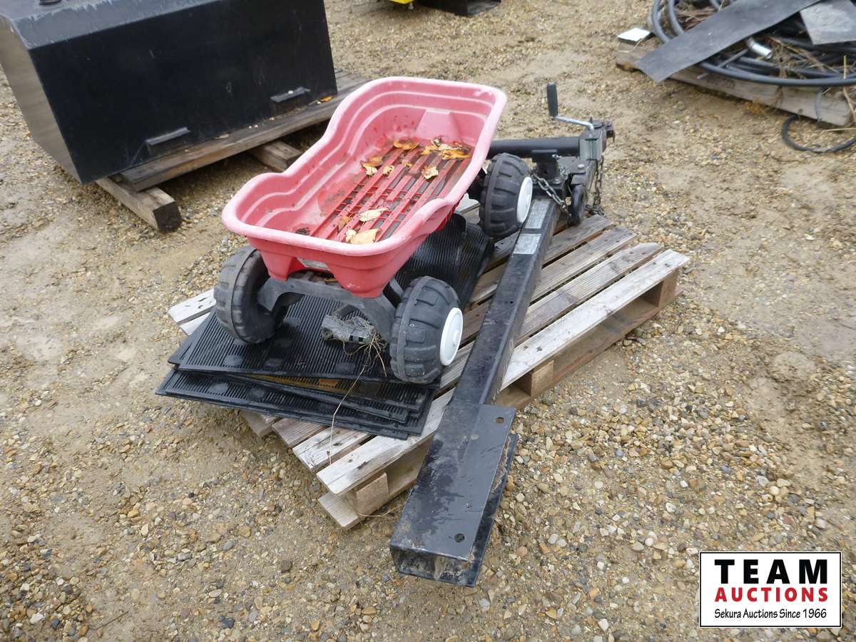 (6) rubber mats, poly toy wagon, trailer hitch with jack