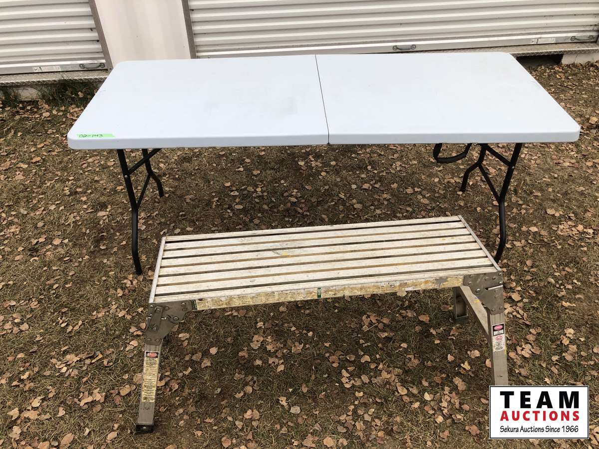 30 inch X 72 inch folding table, 12 inch X 40 inch X 21 inch platform, electric Farenheat space heater