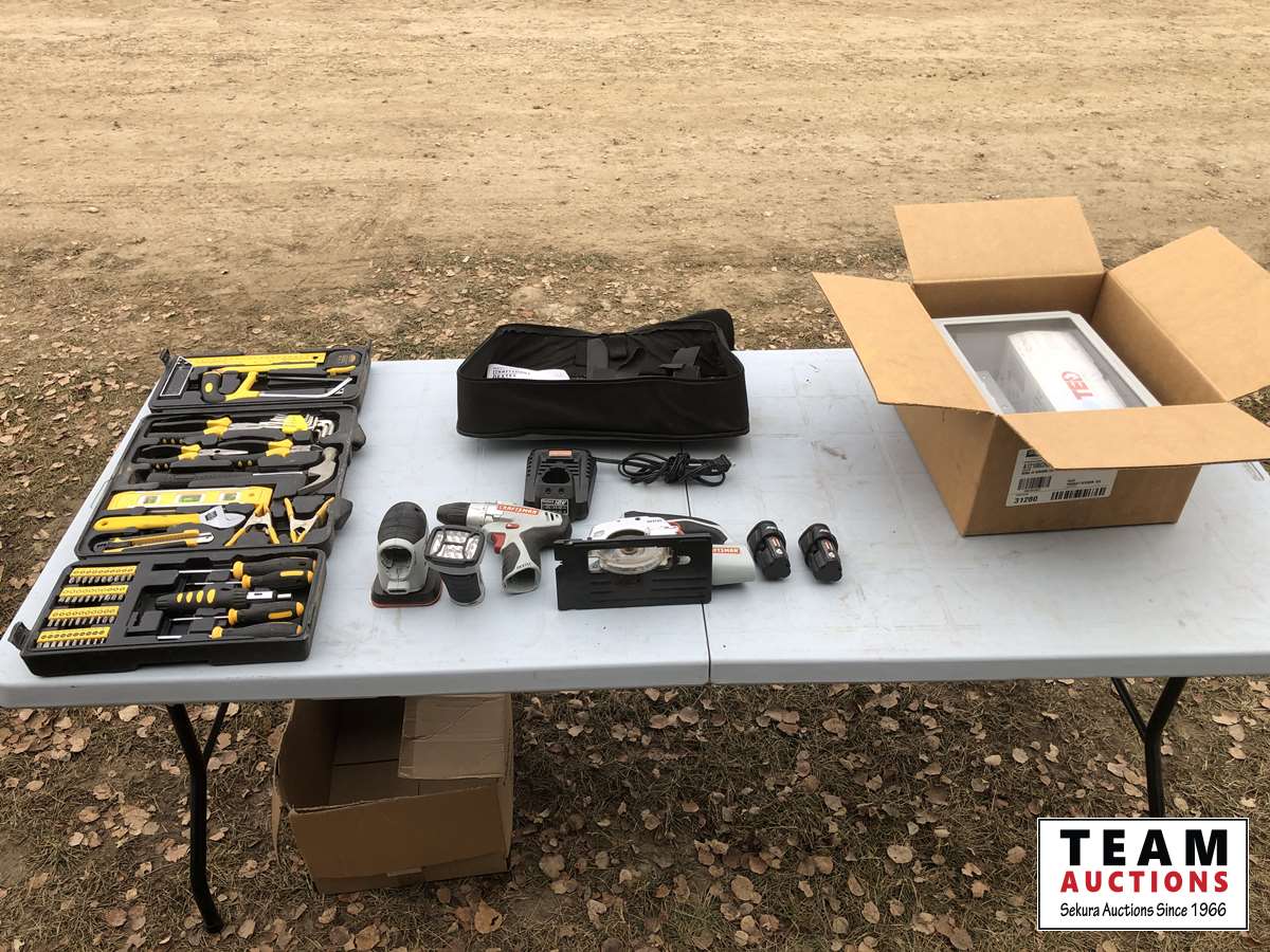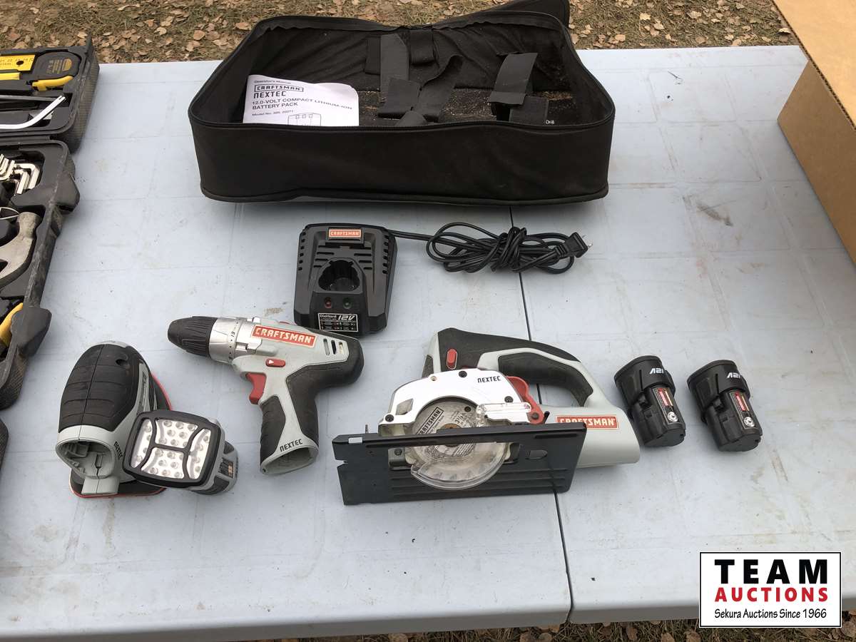 Craftsman Cordless tool kit with batteries & chargers, Work force tool kit, (4) window enclosed electrical boxes