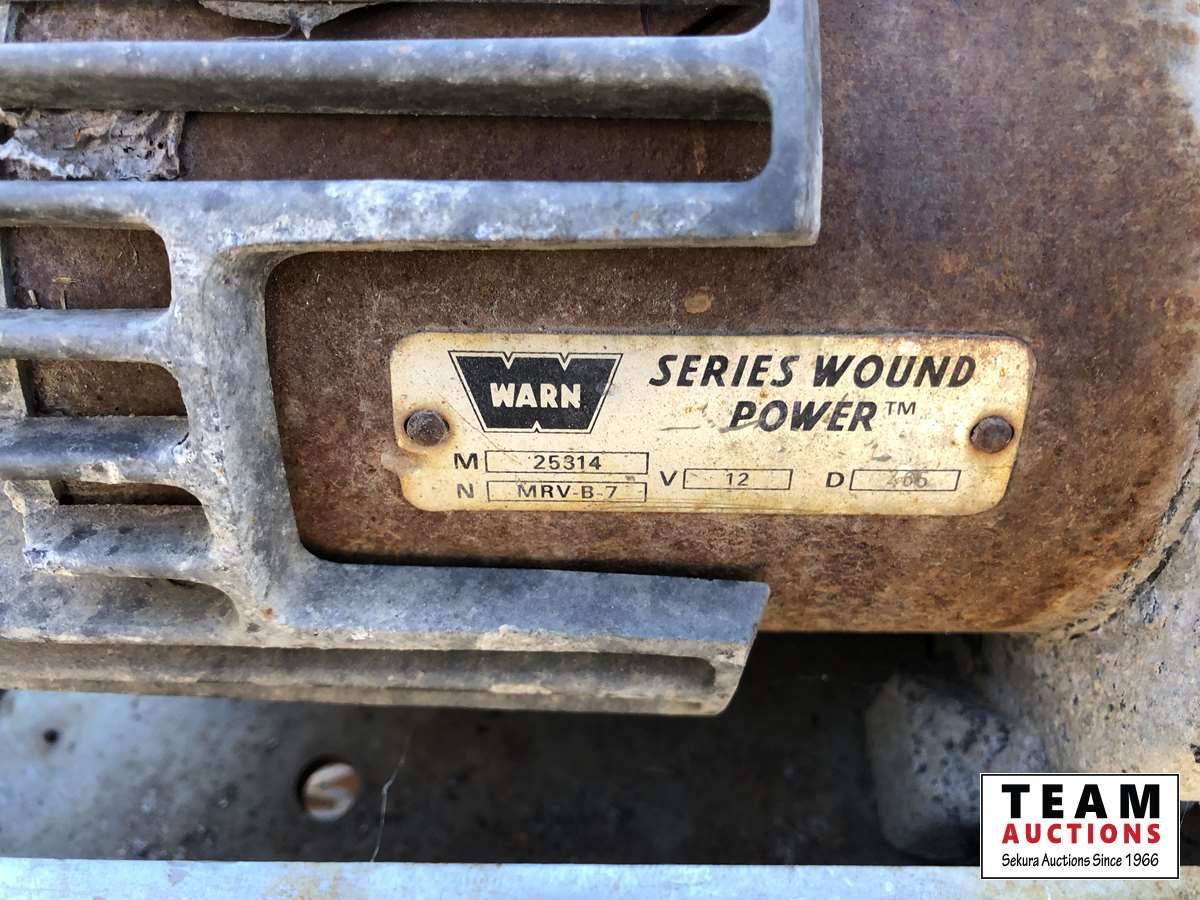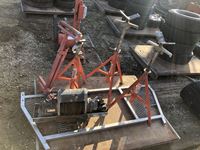 Pickup head rack, Warn winch, pipe stands, (2) adjustable shop stands