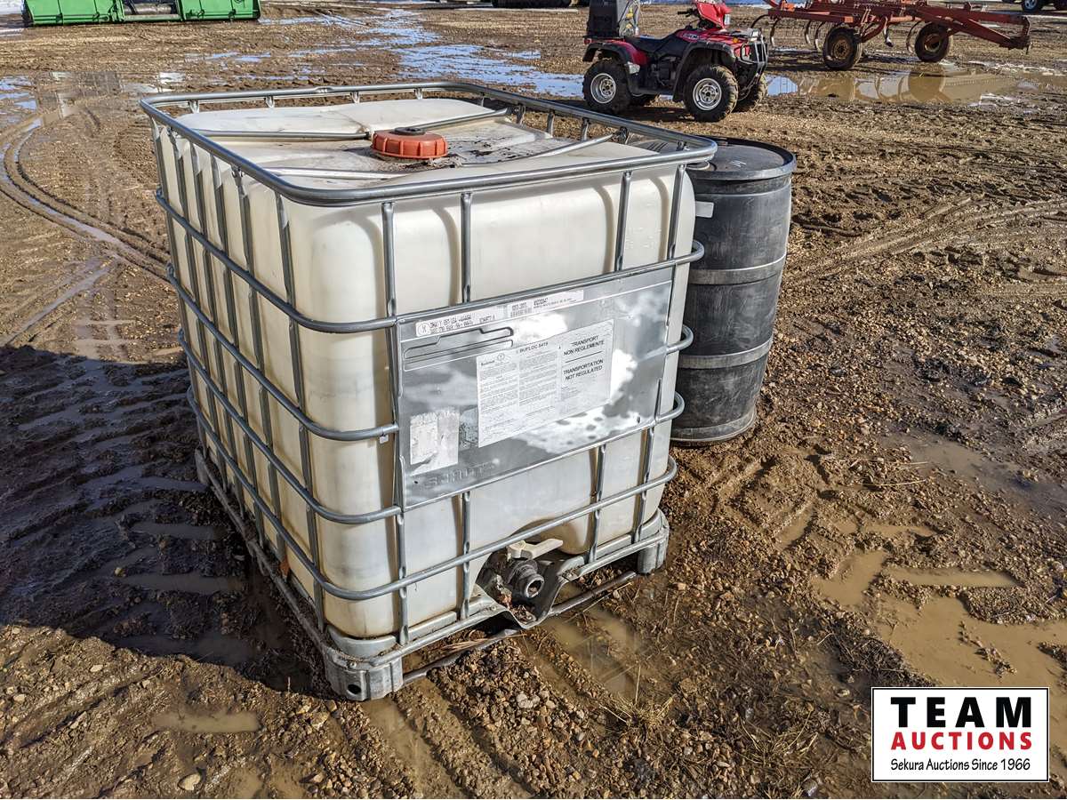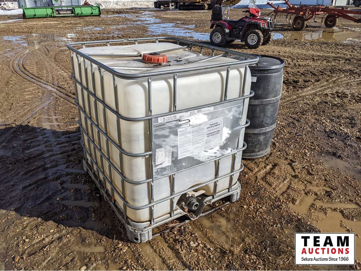 98 100 Liter Caged Poly Tote & Black Poly Barrel