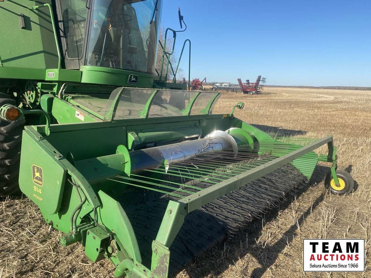 John Deere 914 14 ft header, s/n H00914W660269, VSR, auto HHC, rock trap, fine cut chopper, 20 ft auger, lateral tilt feader house, 30.5L-32 F, 14.9-24 R, 3490 sep hrs showing
