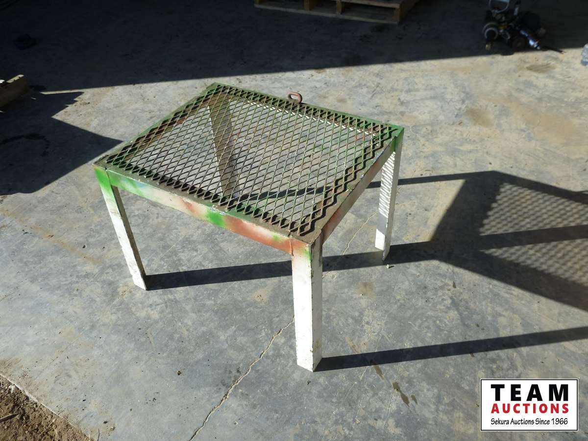 37 (2) Adjustable Pipe Stands, Roller Cart, Aluminum Hose Reel & Expanded Metal Stand