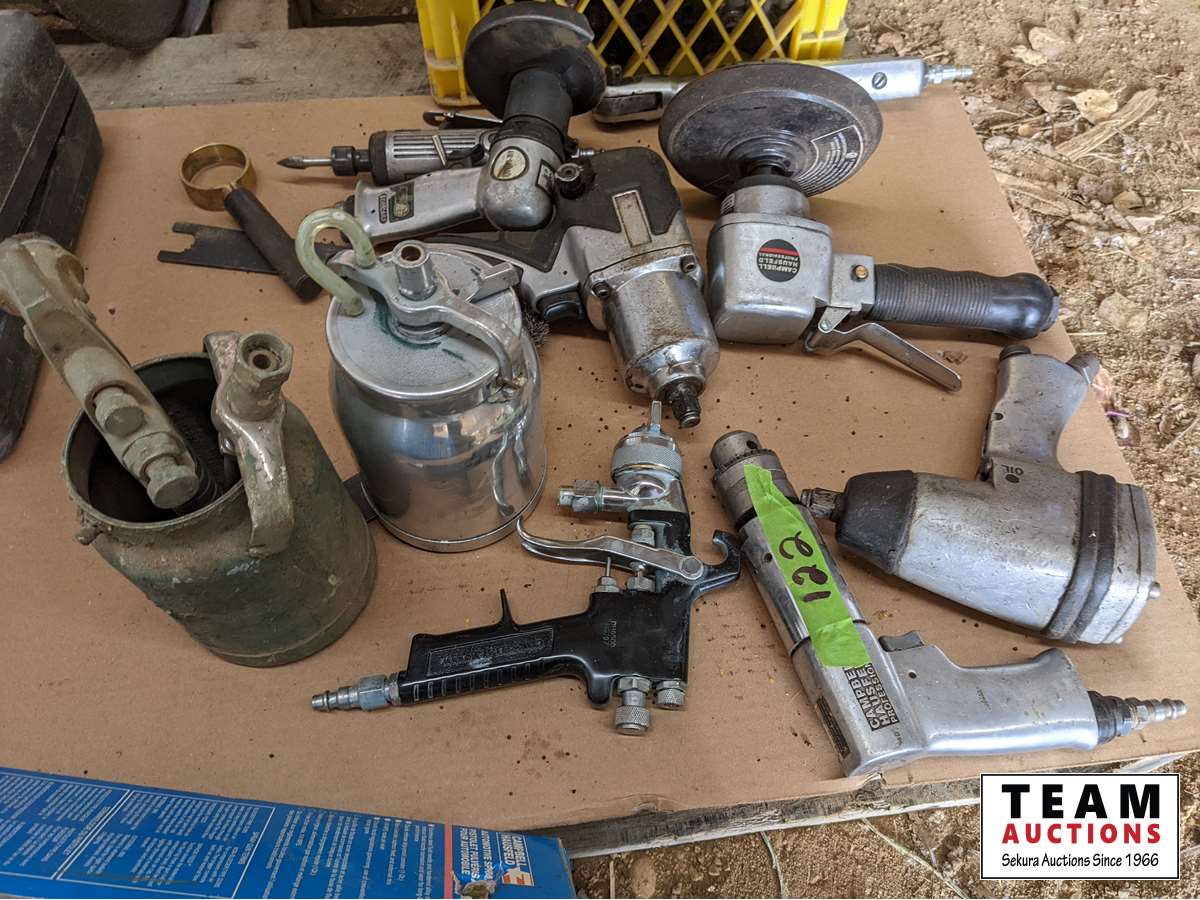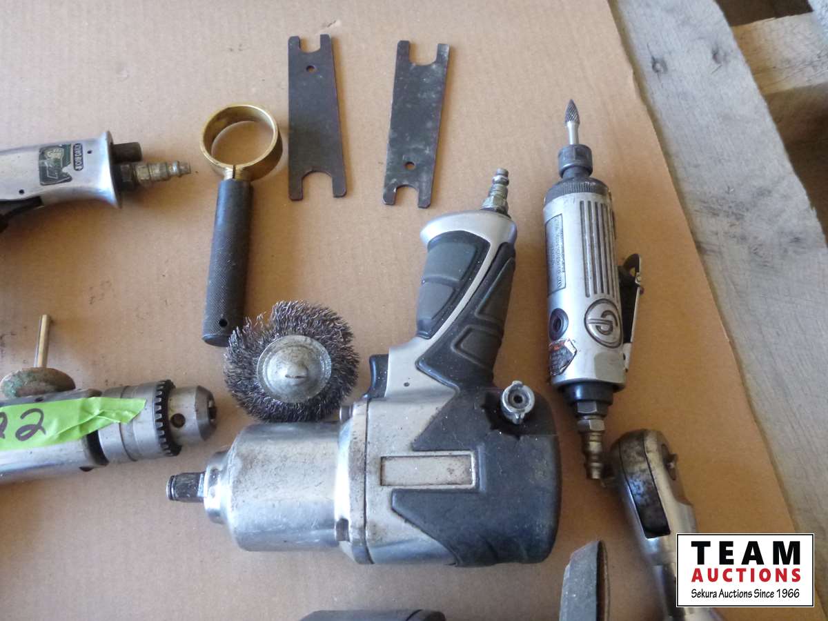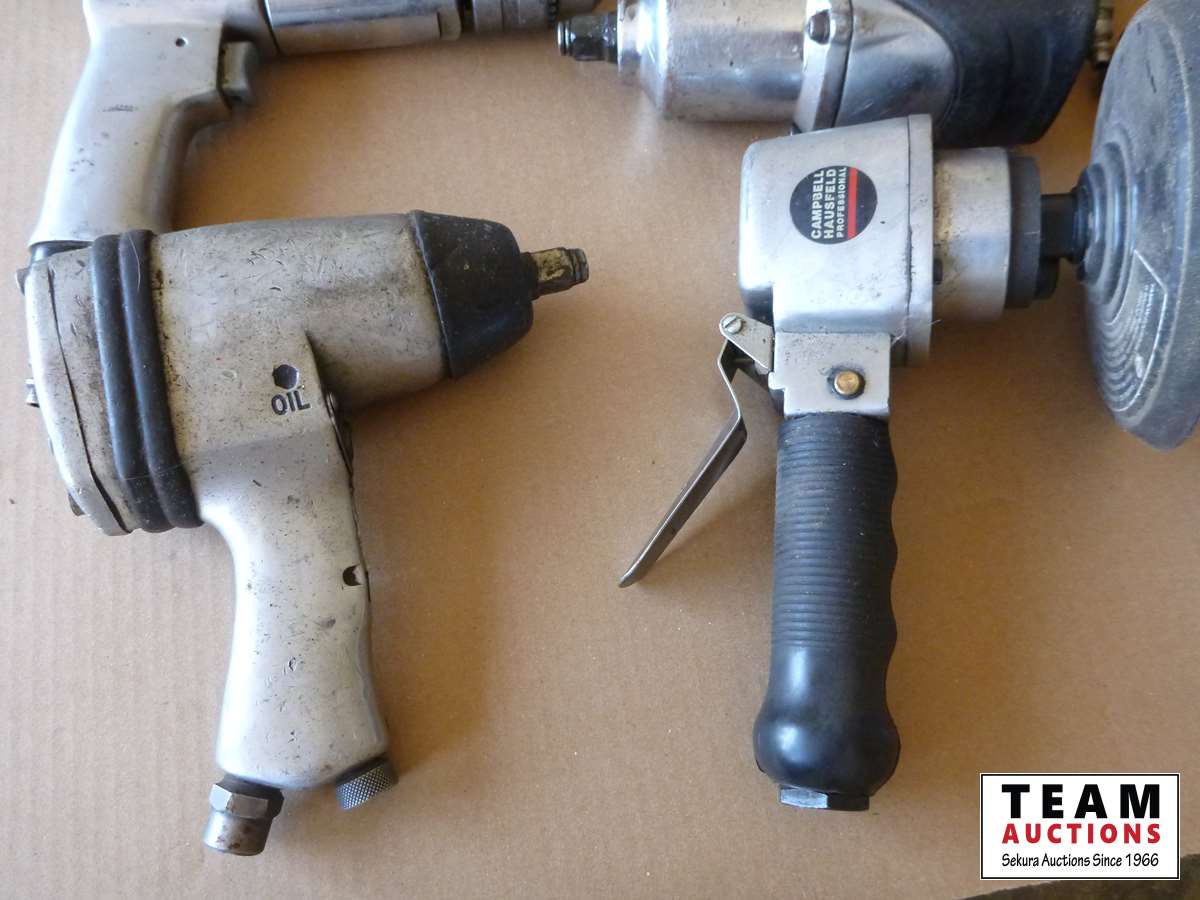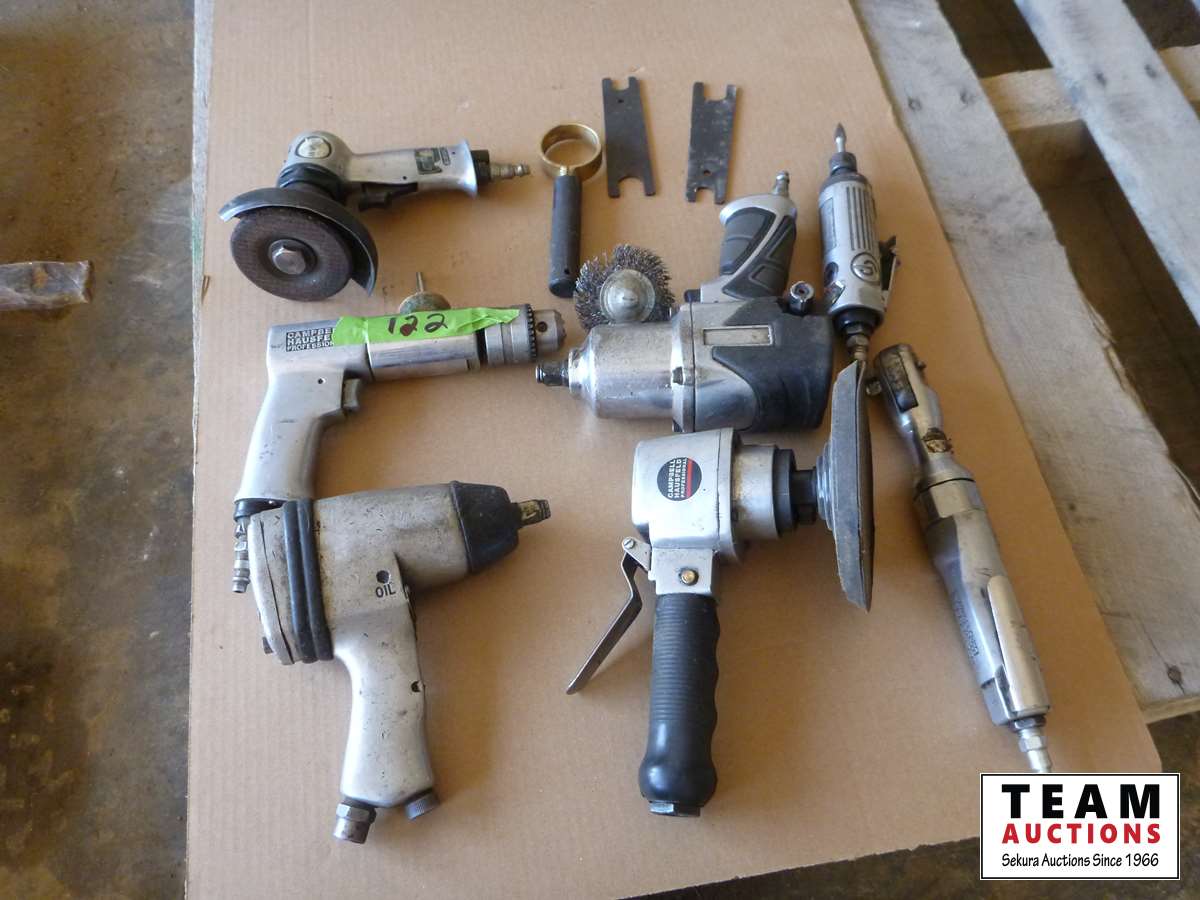 (1) air ratchet, (1) die grinder, (1) drill, (2) 1/2 inch impact, (1) air sander