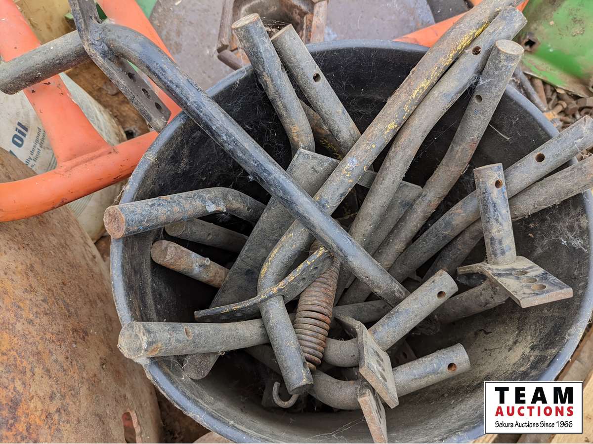 Disc blades, 8 inch hydraulic cylinder, barrel dolly, bolts, scraper mounting rod, miscellaneous items