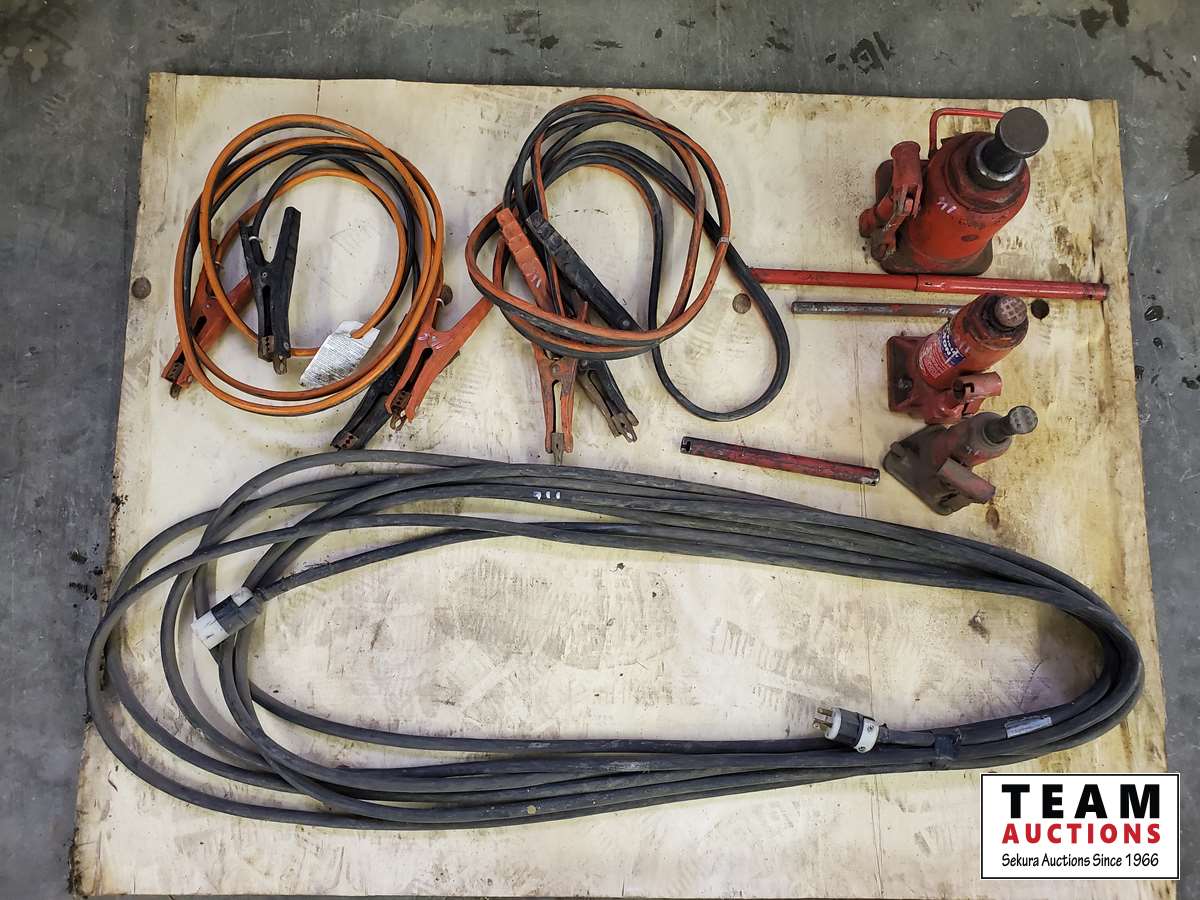 332 (3) Bottle Jacks, Booster Cables & Extension Cord