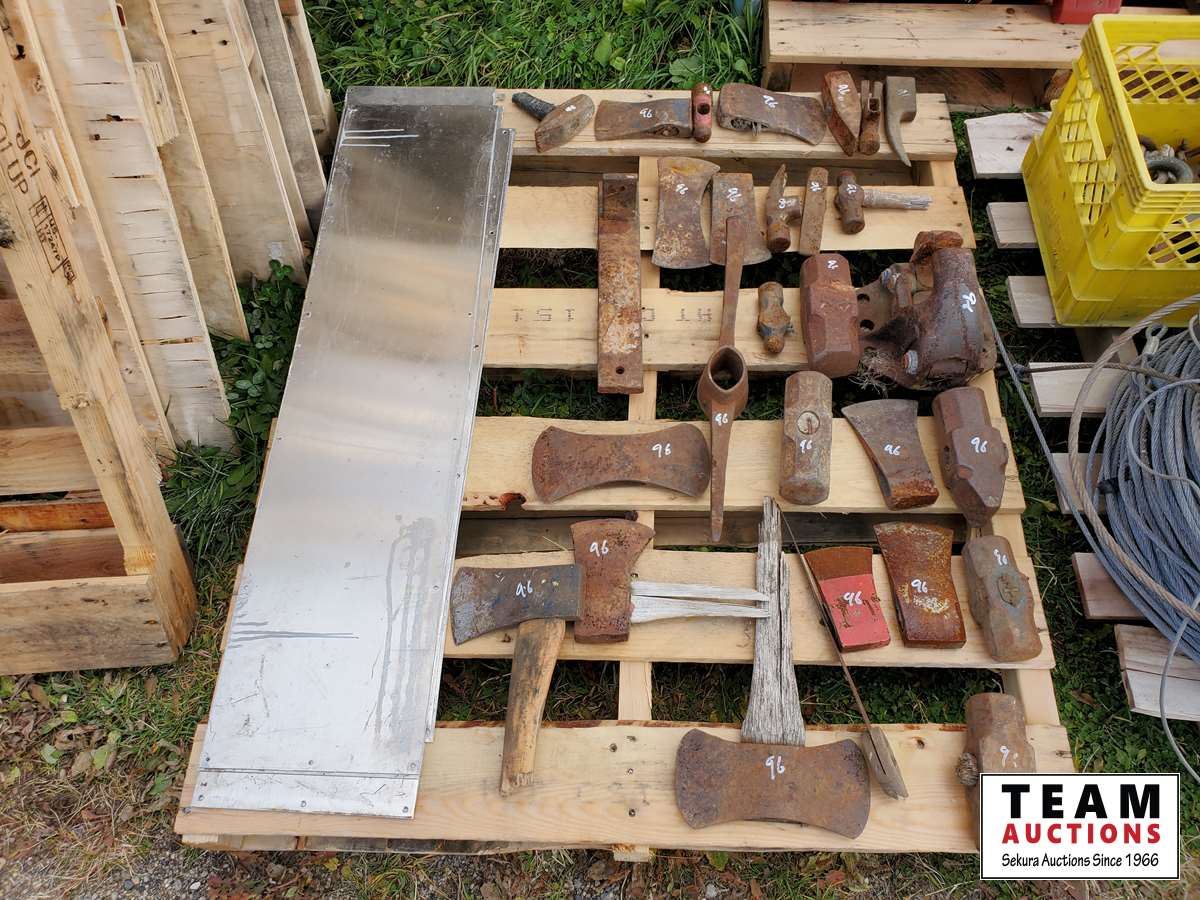 326 Assortment of Axe & Hammer Heads, Sheet Metal & Pintle Hitch