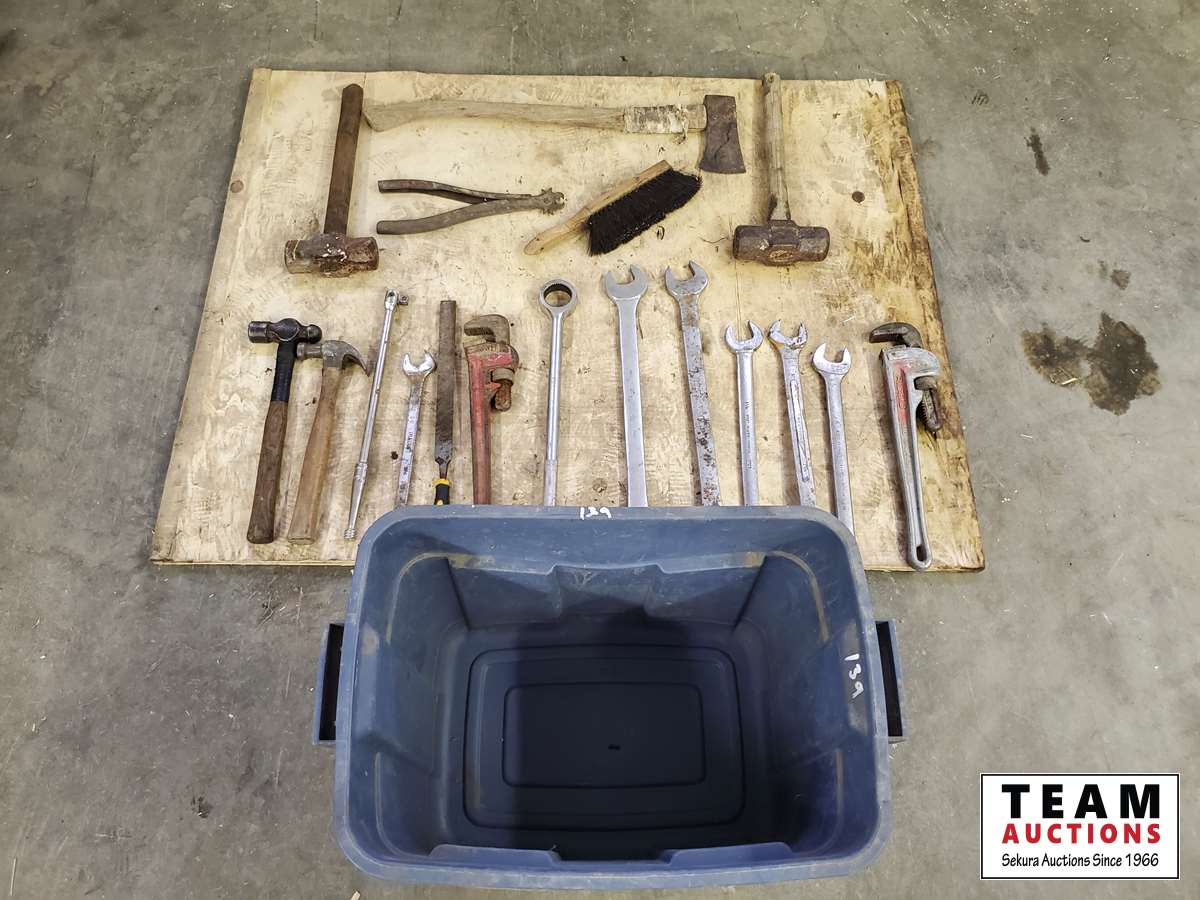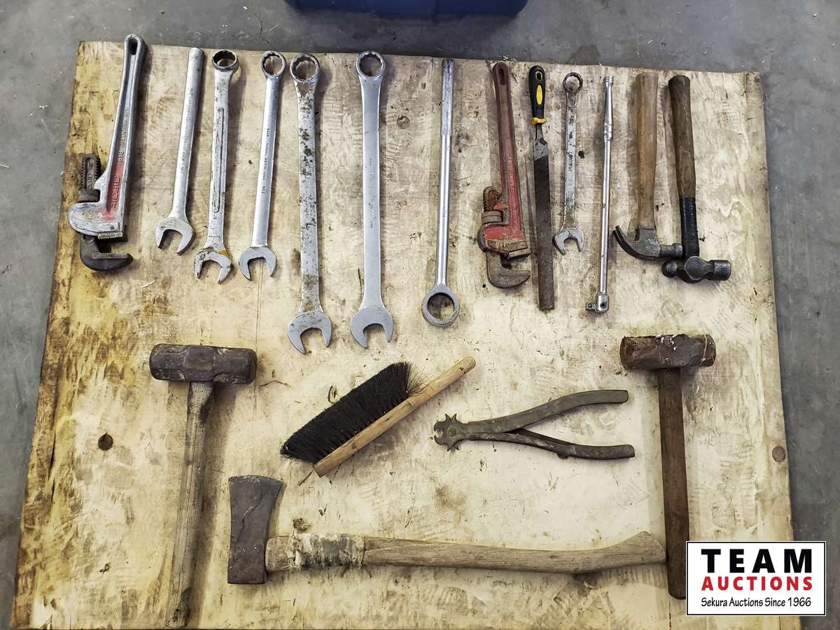 Wrenches, hammer, axe, pipe wrench