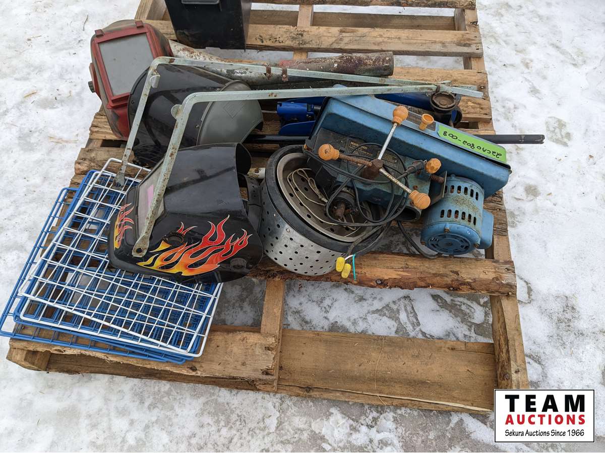 71 Welding Helmets, Face Shield, Battery Box, Floor Jack, & Other Miscellaneous Items